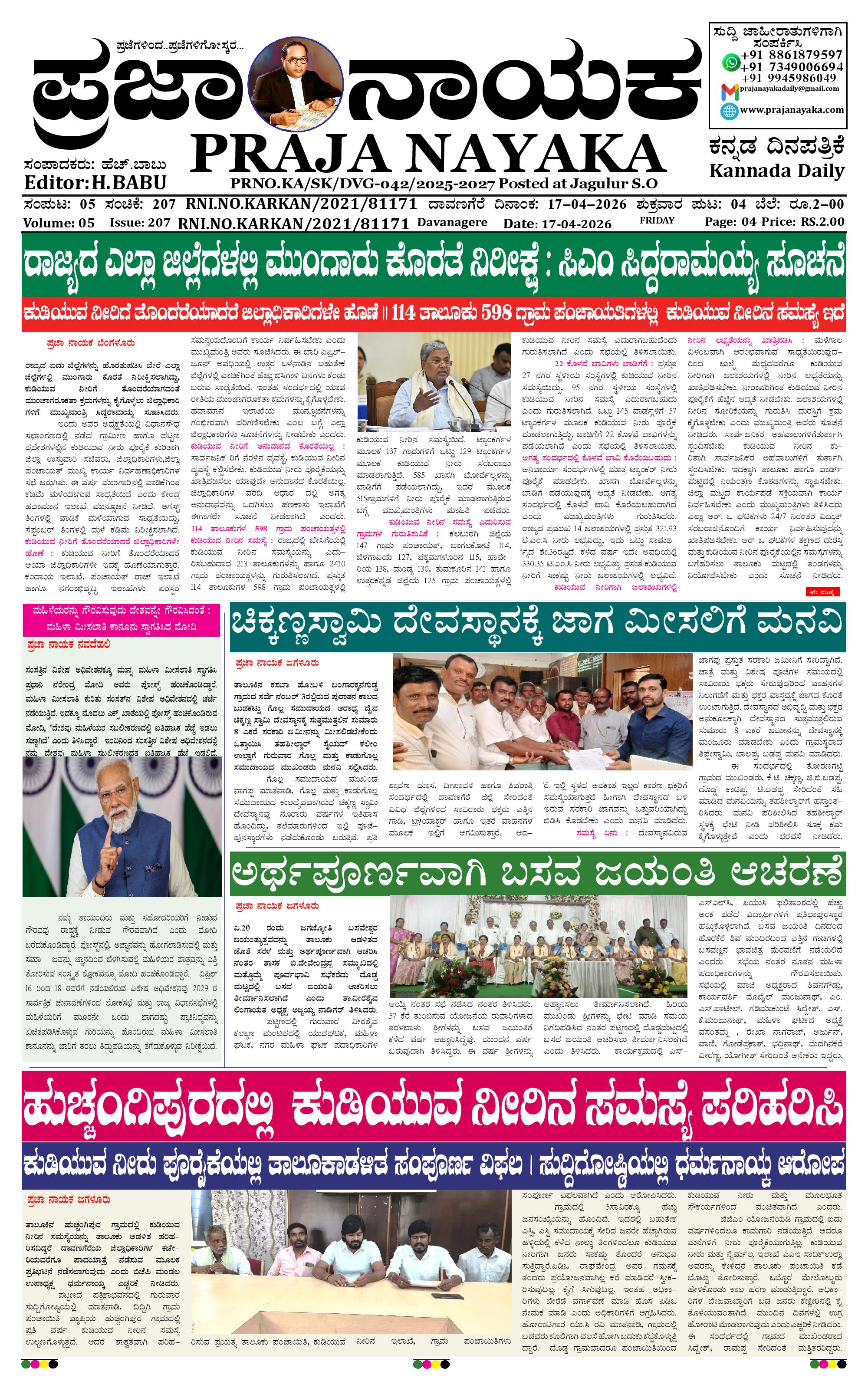 ಪ್ರಜಾ ನಾಯಕ 17 APR 2026 April 17, 2026 << First << 1 >> Last >> Page 1Page 2Page 3Page 4 × ಪ್ರಜಾ ನಾಯಕ 17 APR 2026 PRAJA NAYAKA (142)-page-001PRAJA NAYAKA (142)-page-002PRAJA NAYAKA (142)-page-003PRAJA NAYAKA (142)-page-004 << First << 1 >> Last >> PRAJA NAYAKA (142)-page-001PRAJA NAYAKA (142)-page-002PRAJA NAYAKA (142)-page-003PRAJA NAYAKA (142)-page-004 PRAJA NAYAKA (142)-page-001