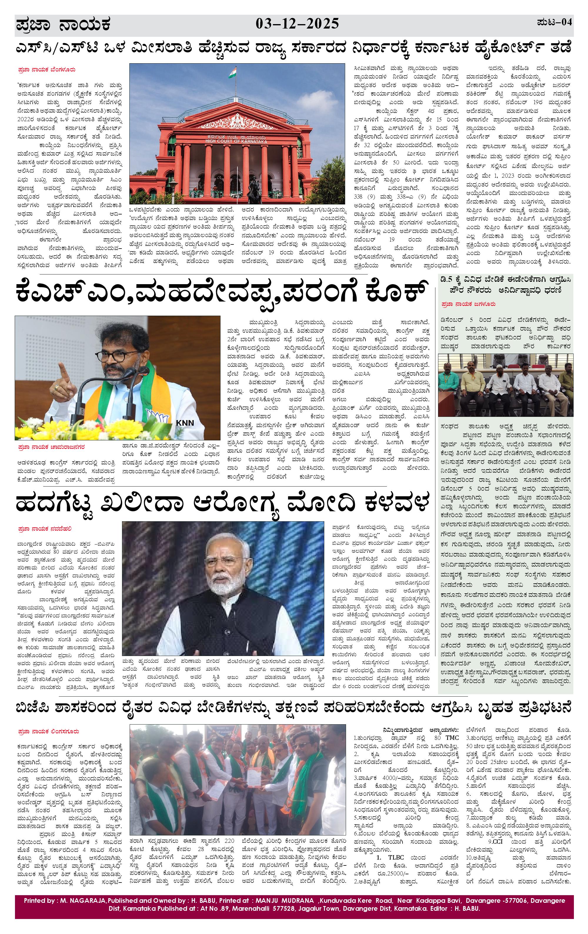 ಪ್ರಜಾ ನಾಯಕ 03 DEC 2025 Page: 4 December 03, 2025 << First << 4 >> Last >> Page 1Page 2Page 3Page 4 × ಪ್ರಜಾ ನಾಯಕ 03 DEC 2025 PRAJA NAYAKA (44)-page-001PRAJA NAYAKA (44)-page-002PRAJA NAYAKA (44)-page-003PRAJA NAYAKA (44)-page-004 << First << 4 >> Last >> PRAJA NAYAKA (44)-page-001PRAJA NAYAKA (44)-page-002PRAJA NAYAKA (44)-page-003PRAJA NAYAKA (44)-page-004 PRAJA NAYAKA (44)-page-004