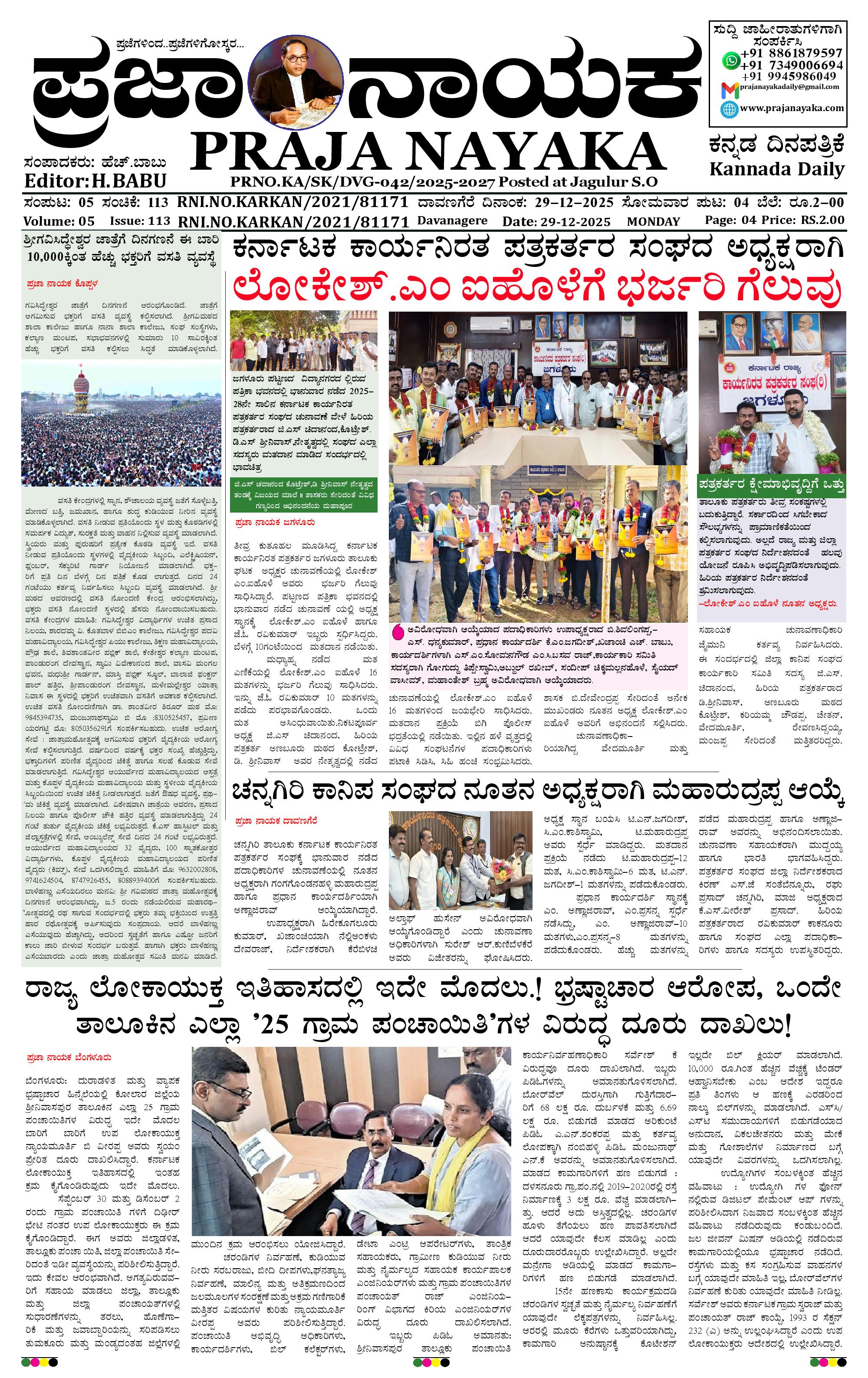 ಪ್ರಜಾ ನಾಯಕ 29 DEC 2025 December 29, 2025 << First << 1 >> Last >> Page 1Page 2Page 3Page 4 × ಪ್ರಜಾ ನಾಯಕ 29 DEC 2025 PRAJA NAYAKA (63)-page-001PRAJA NAYAKA (63)-page-002PRAJA NAYAKA (63)-page-003PRAJA NAYAKA (63)-page-004 << First << 1 >> Last >> PRAJA NAYAKA (63)-page-001PRAJA NAYAKA (63)-page-002PRAJA NAYAKA (63)-page-003PRAJA NAYAKA (63)-page-004 PRAJA NAYAKA (63)-page-001
