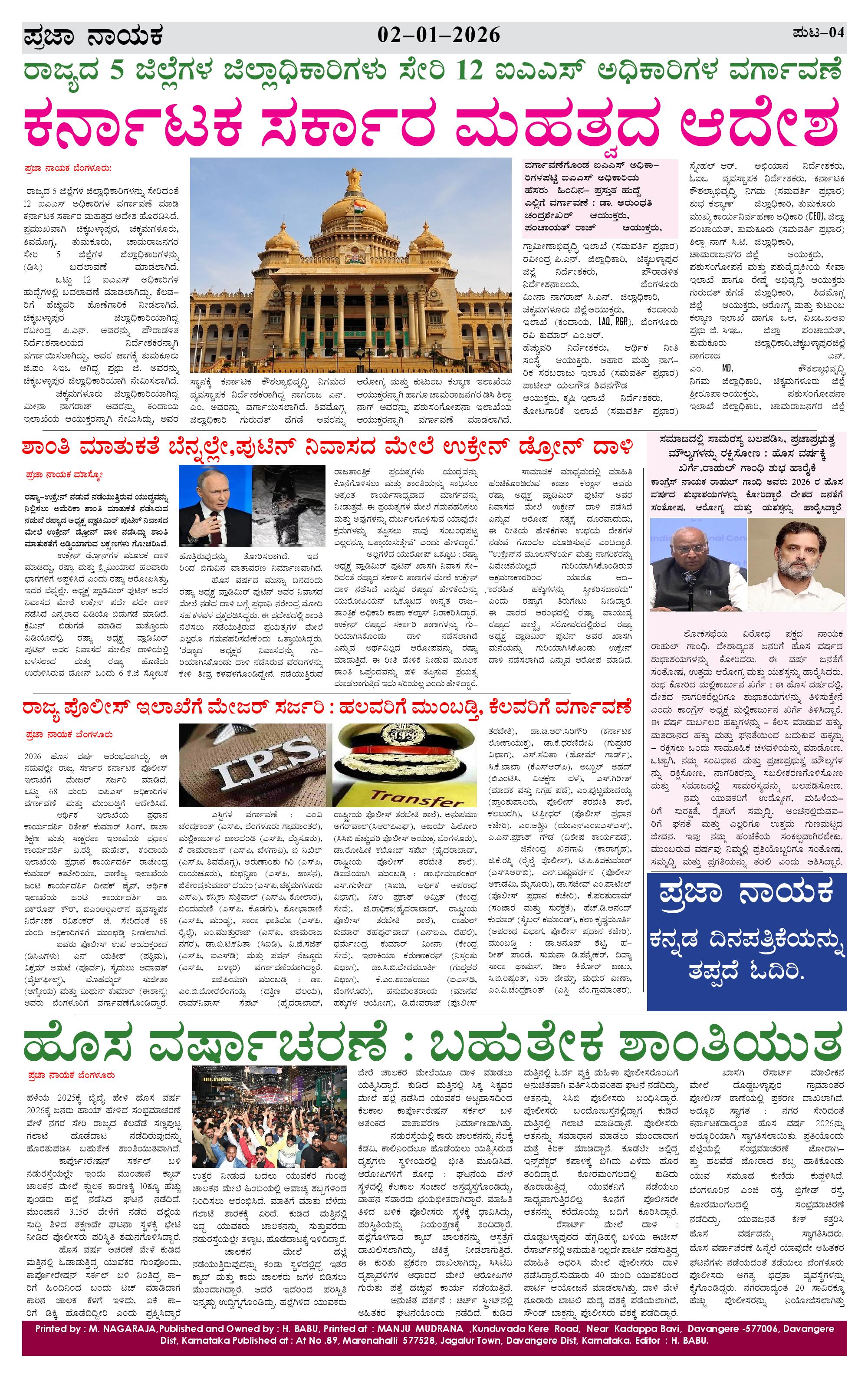 ಪ್ರಜಾ ನಾಯಕ 02 JAN 2026 Page: 4 January 02, 2026 << First << 4 >> Last >> Page 1Page 2Page 3Page 4 × ಪ್ರಜಾ ನಾಯಕ 02 JAN 2026 P N (3)-page-001P N (3)-page-002P N (3)-page-003P N (3)-page-004 << First << 4 >> Last >> P N (3)-page-001P N (3)-page-002P N (3)-page-003P N (3)-page-004 P N (3)-page-004
