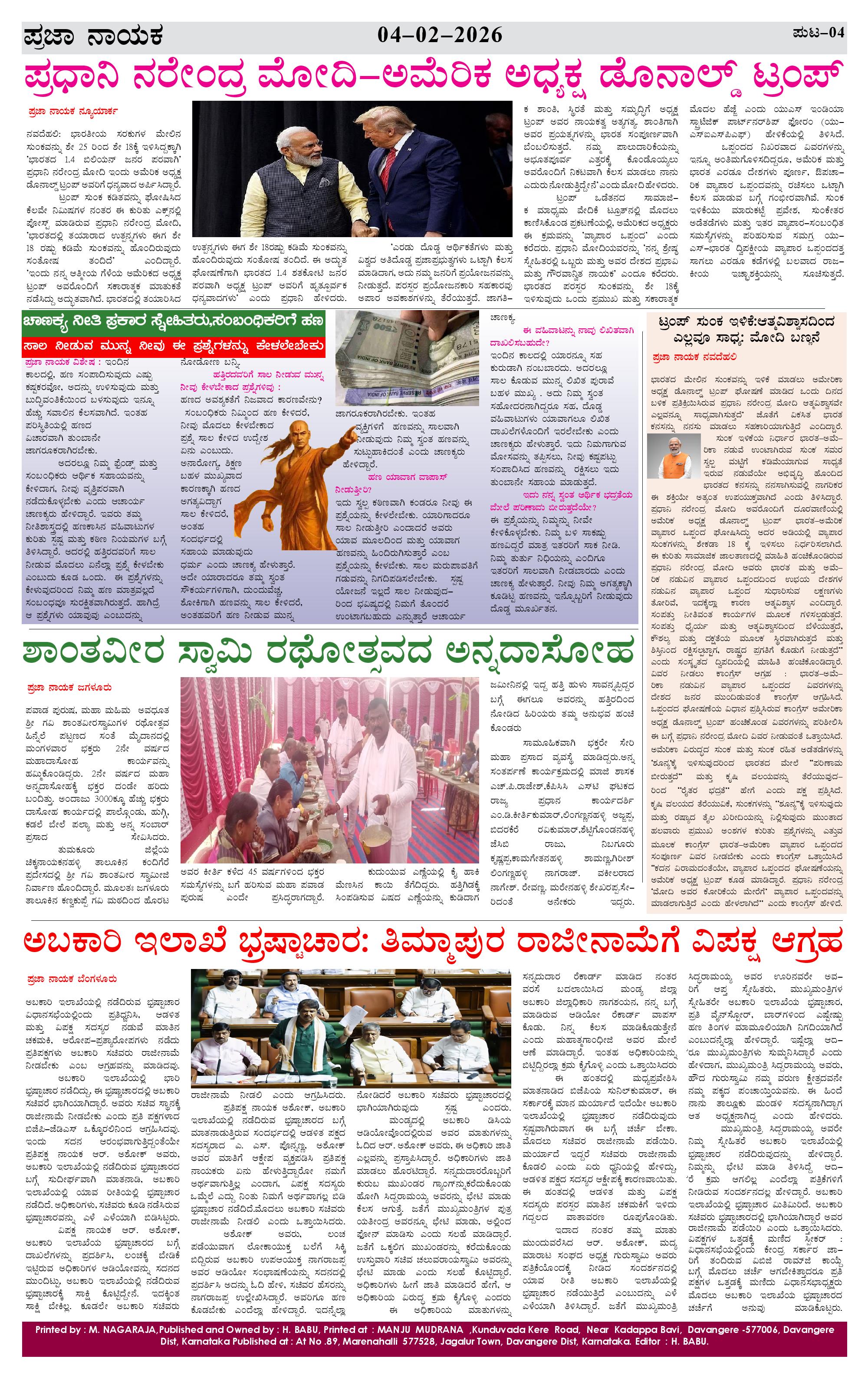 ಪ್ರಜಾ ನಾಯಕ 04 Feb 2026 Page: 4 February 04, 2026 << First << 4 >> Last >> Page 1Page 2Page 3Page 4 × ಪ್ರಜಾ ನಾಯಕ 04 Feb 2026 PRAJA NAYAKA (88)-page-001PRAJA NAYAKA (88)-page-002PRAJA NAYAKA (88)-page-003PRAJA NAYAKA (88)-page-004 << First << 4 >> Last >> PRAJA NAYAKA (88)-page-001PRAJA NAYAKA (88)-page-002PRAJA NAYAKA (88)-page-003PRAJA NAYAKA (88)-page-004 PRAJA NAYAKA (88)-page-004