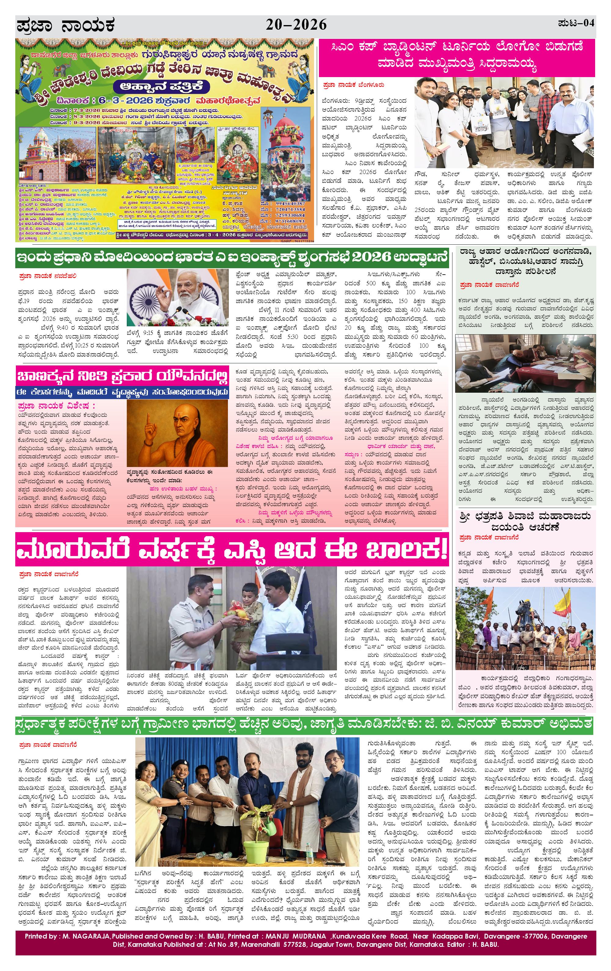 ಪ್ರಜಾ ನಾಯಕ 20 Feb 2026 Page: 4 February 20, 2026 << First << 4 >> Last >> Page 1Page 2Page 3Page 4 × ಪ್ರಜಾ ನಾಯಕ 20 Feb 2026 PRAJA NAYAKA (102)-page-001PRAJA NAYAKA (102)-page-002PRAJA NAYAKA (102)-page-003PRAJA NAYAKA (102)-page-004 << First << 4 >> Last >> PRAJA NAYAKA (102)-page-001PRAJA NAYAKA (102)-page-002PRAJA NAYAKA (102)-page-003PRAJA NAYAKA (102)-page-004 PRAJA NAYAKA (102)-page-004