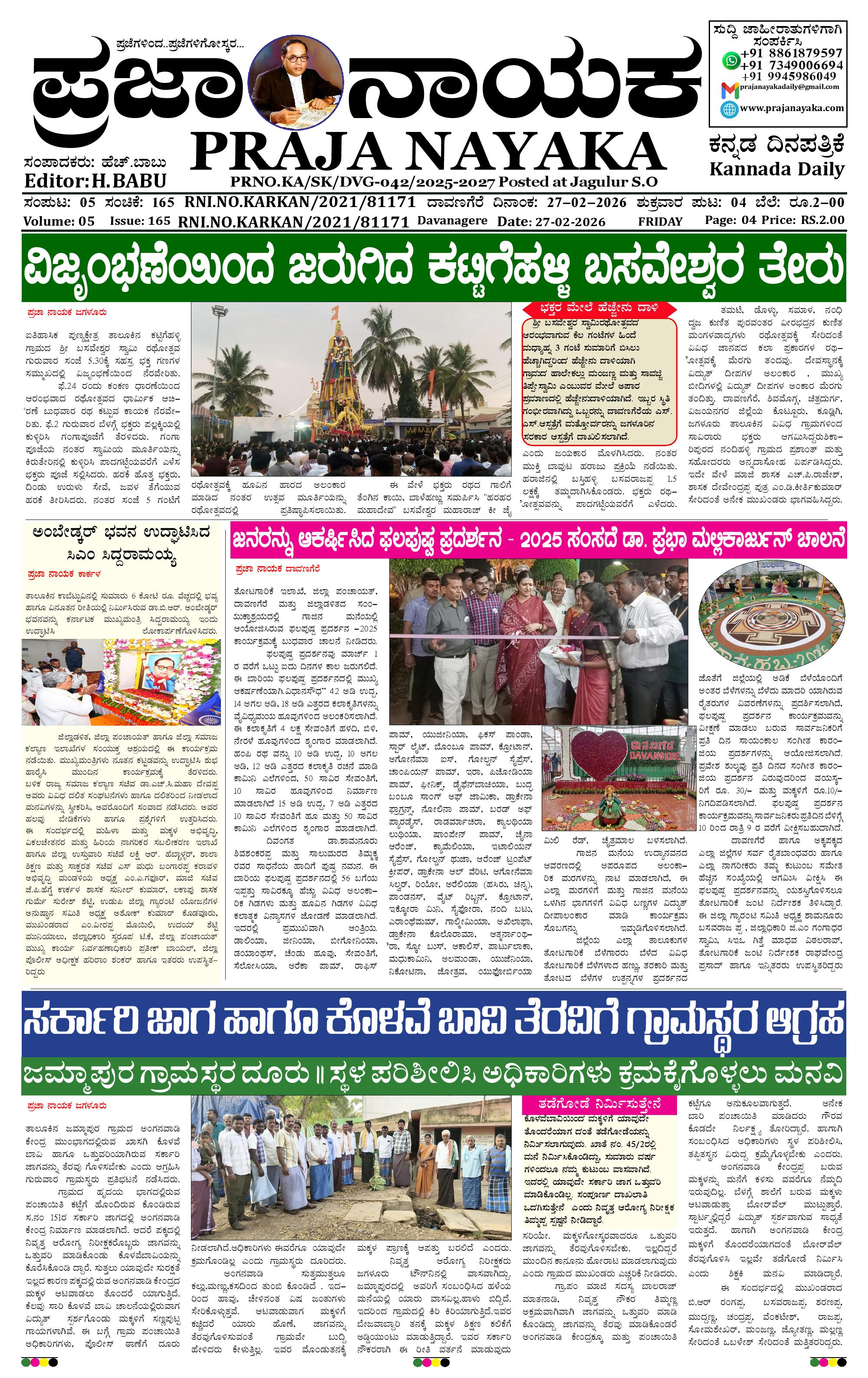 ಪ್ರಜಾ ನಾಯಕ 27 Feb 2026 February 27, 2026 << First << 1 >> Last >> Page 1Page 2Page 3Page 4 × ಪ್ರಜಾ ನಾಯಕ 27 Feb 2026 PRAJA NAYAKA (108)-page-001PRAJA NAYAKA (108)-page-002PRAJA NAYAKA (108)-page-003PRAJA NAYAKA (108)-page-004 << First << 1 >> Last >> PRAJA NAYAKA (108)-page-001PRAJA NAYAKA (108)-page-002PRAJA NAYAKA (108)-page-003PRAJA NAYAKA (108)-page-004 PRAJA NAYAKA (108)-page-001