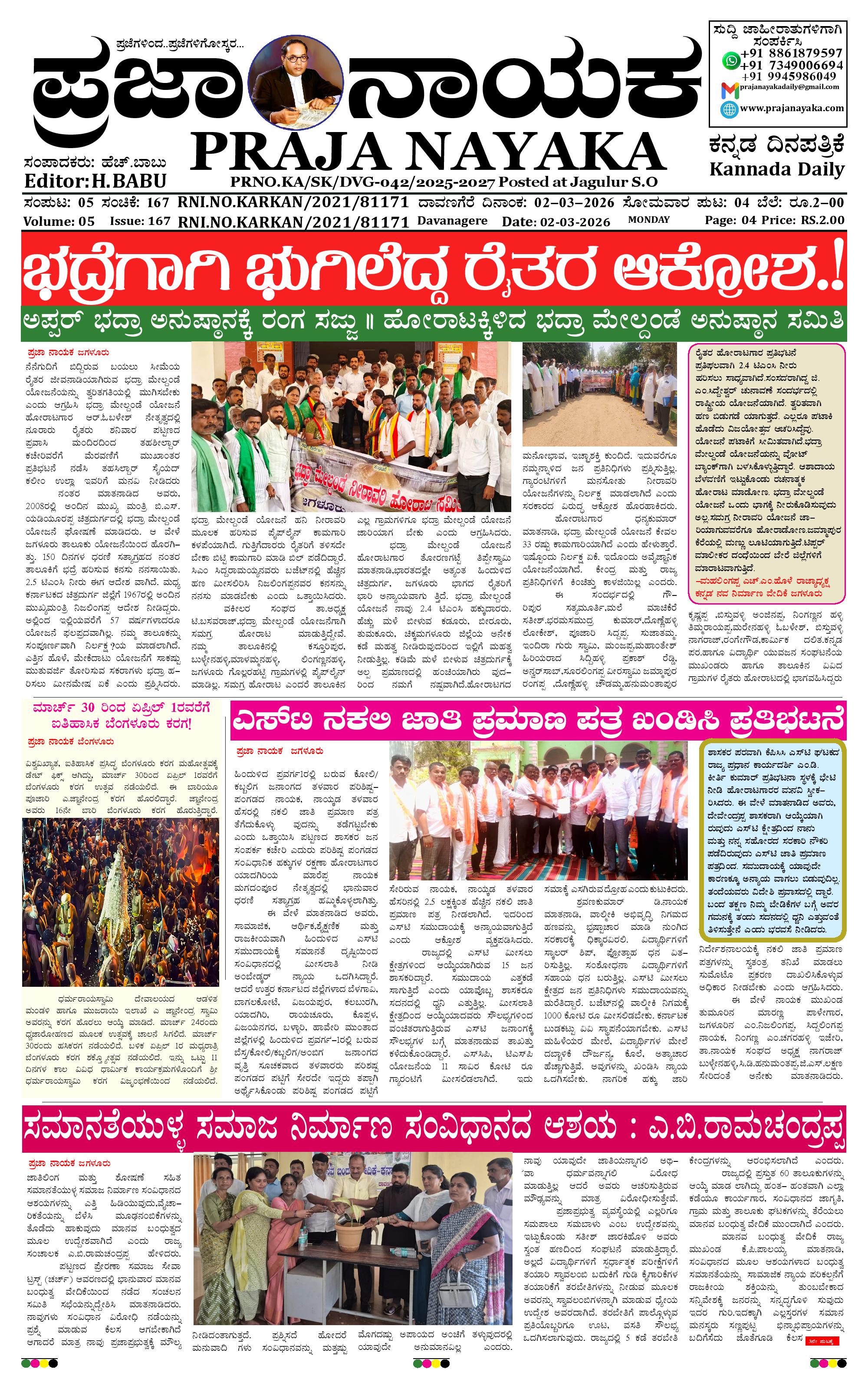 ಪ್ರಜಾ ನಾಯಕ 02 Mar 2026 March 02, 2026 << First << 1 >> Last >> Page 1Page 2Page 3Page 4 × ಪ್ರಜಾ ನಾಯಕ 02 Mar 2026 PRAJA NAYAKA (110)-page-001PRAJA NAYAKA (110)-page-002PRAJA NAYAKA (110)-page-003PRAJA NAYAKA (110)-page-004 << First << 1 >> Last >> PRAJA NAYAKA (110)-page-001PRAJA NAYAKA (110)-page-002PRAJA NAYAKA (110)-page-003PRAJA NAYAKA (110)-page-004 PRAJA NAYAKA (110)-page-001