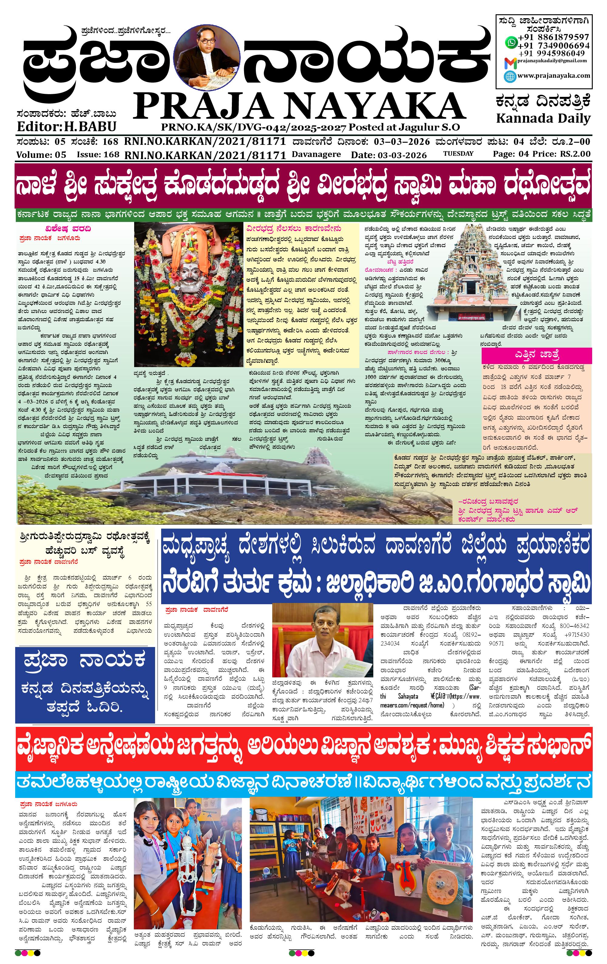 ಪ್ರಜಾ ನಾಯಕ 03 MAR 2026 March 03, 2026 << First << 1 >> Last >> Page 1Page 2Page 3Page 4 × ಪ್ರಜಾ ನಾಯಕ 03 MAR 2026 PRAJA NAYAKA (111)-page-001PRAJA NAYAKA (111)-page-002PRAJA NAYAKA (111)-page-003PRAJA NAYAKA (111)-page-004 << First << 1 >> Last >> PRAJA NAYAKA (111)-page-001PRAJA NAYAKA (111)-page-002PRAJA NAYAKA (111)-page-003PRAJA NAYAKA (111)-page-004 PRAJA NAYAKA (111)-page-001