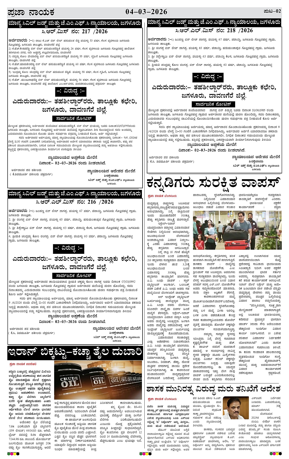 ಪ್ರಜಾ ನಾಯಕ 04 MAR 2026 Page: 2 March 04, 2026 << First << 2 >> Last >> Page 1Page 2Page 3Page 4 × ಪ್ರಜಾ ನಾಯಕ 04 MAR 2026 PRAJA NAYAKA (112)-page-001PRAJA NAYAKA (112)-page-002PRAJA NAYAKA (112)-page-003PRAJA NAYAKA (112)-page-004 << First << 2 >> Last >> PRAJA NAYAKA (112)-page-001PRAJA NAYAKA (112)-page-002PRAJA NAYAKA (112)-page-003PRAJA NAYAKA (112)-page-004 PRAJA NAYAKA (112)-page-002
