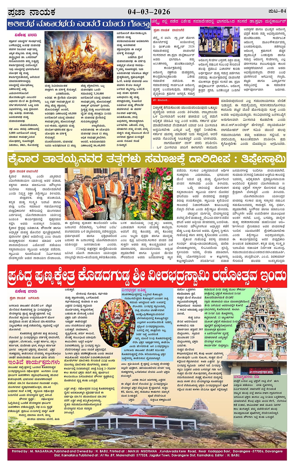ಪ್ರಜಾ ನಾಯಕ 04 MAR 2026 Page: 4 March 04, 2026 << First << 4 >> Last >> Page 1Page 2Page 3Page 4 × ಪ್ರಜಾ ನಾಯಕ 04 MAR 2026 PRAJA NAYAKA (112)-page-001PRAJA NAYAKA (112)-page-002PRAJA NAYAKA (112)-page-003PRAJA NAYAKA (112)-page-004 << First << 4 >> Last >> PRAJA NAYAKA (112)-page-001PRAJA NAYAKA (112)-page-002PRAJA NAYAKA (112)-page-003PRAJA NAYAKA (112)-page-004 PRAJA NAYAKA (112)-page-004