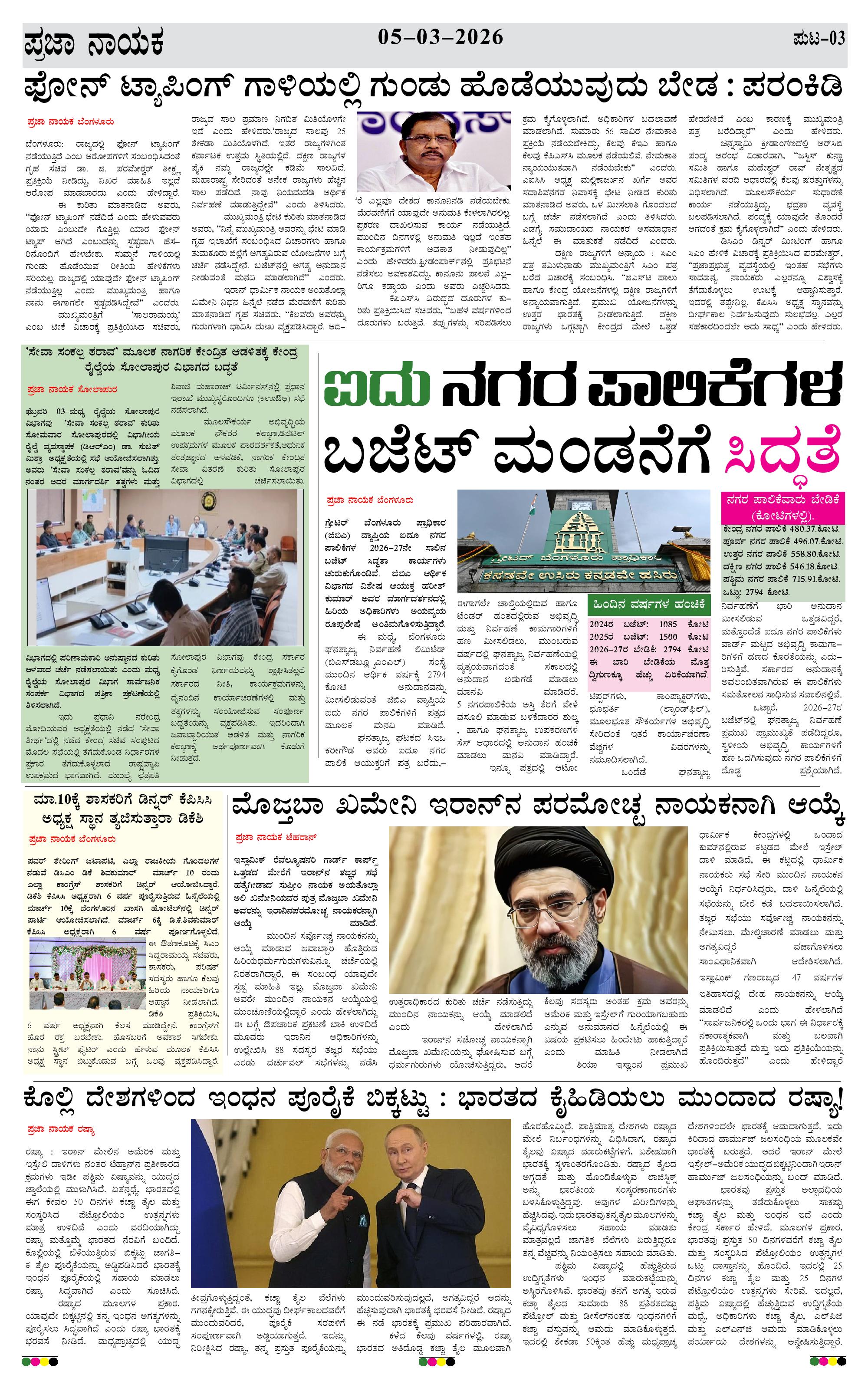 ಪ್ರಜಾ ನಾಯಕ 05 MAR 2026 Page: 3 March 05, 2026 << First << 3 >> Last >> Page 1Page 2Page 3Page 4 × ಪ್ರಜಾ ನಾಯಕ 05 MAR 2026 PRAJA NAYAKA (113)-page-001PRAJA NAYAKA (113)-page-002PRAJA NAYAKA (113)-page-003PRAJA NAYAKA (113)-page-004 << First << 3 >> Last >> PRAJA NAYAKA (113)-page-001PRAJA NAYAKA (113)-page-002PRAJA NAYAKA (113)-page-003PRAJA NAYAKA (113)-page-004 PRAJA NAYAKA (113)-page-003