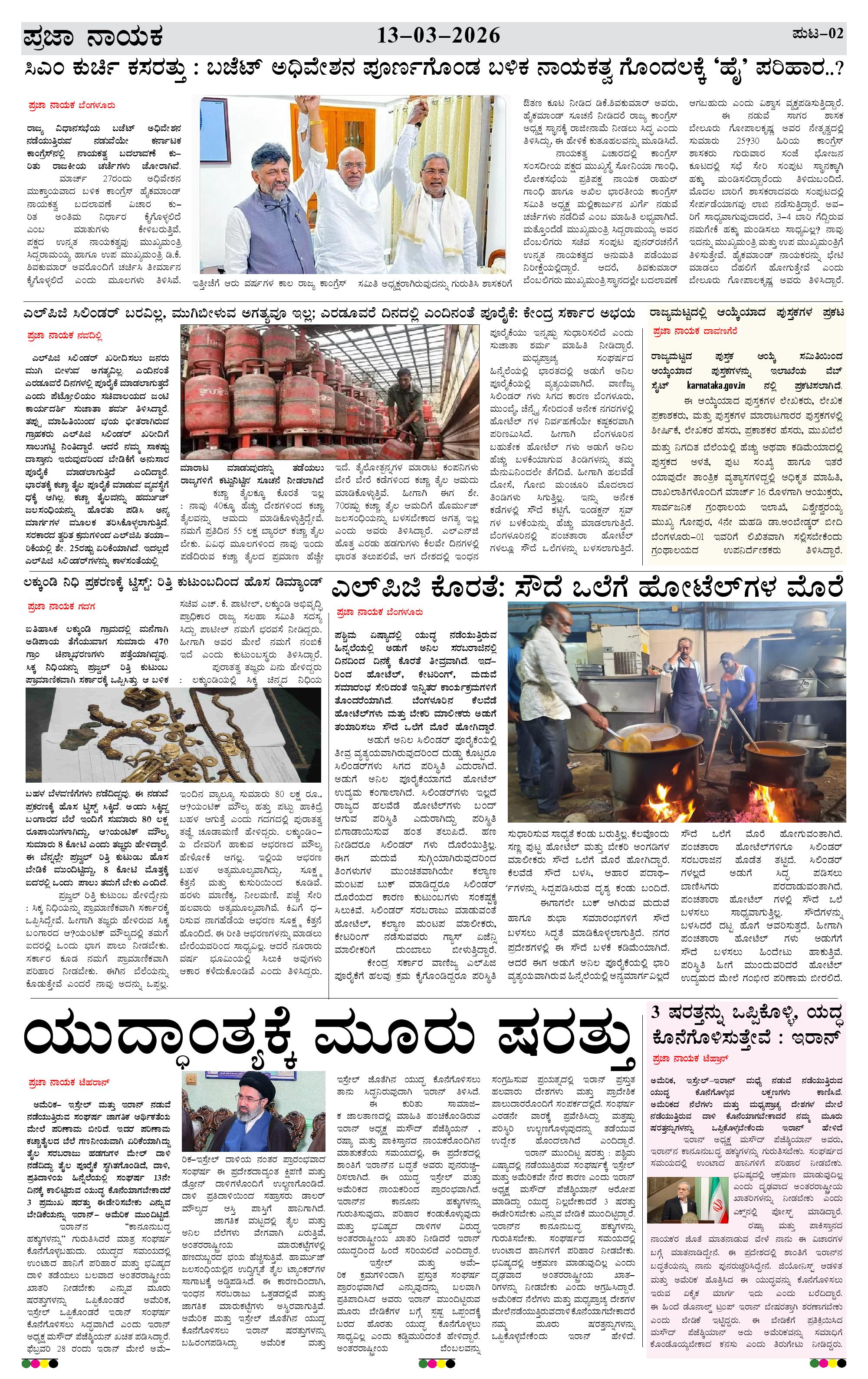 ಪ್ರಜಾ ನಾಯಕ 13 MAR 2026 Page: 2 March 13, 2026 << First << 2 >> Last >> Page 1Page 2Page 3Page 4 × ಪ್ರಜಾ ನಾಯಕ 13 MAR 2026 PRAJA NAYAKA 13-03-2026..-page-001PRAJA NAYAKA 13-03-2026..-page-002PRAJA NAYAKA 13-03-2026..-page-003PRAJA NAYAKA 13-03-2026..-page-004 << First << 2 >> Last >> PRAJA NAYAKA 13-03-2026..-page-001PRAJA NAYAKA 13-03-2026..-page-002PRAJA NAYAKA 13-03-2026..-page-003PRAJA NAYAKA 13-03-2026..-page-004 PRAJA NAYAKA 13-03-2026..-page-002