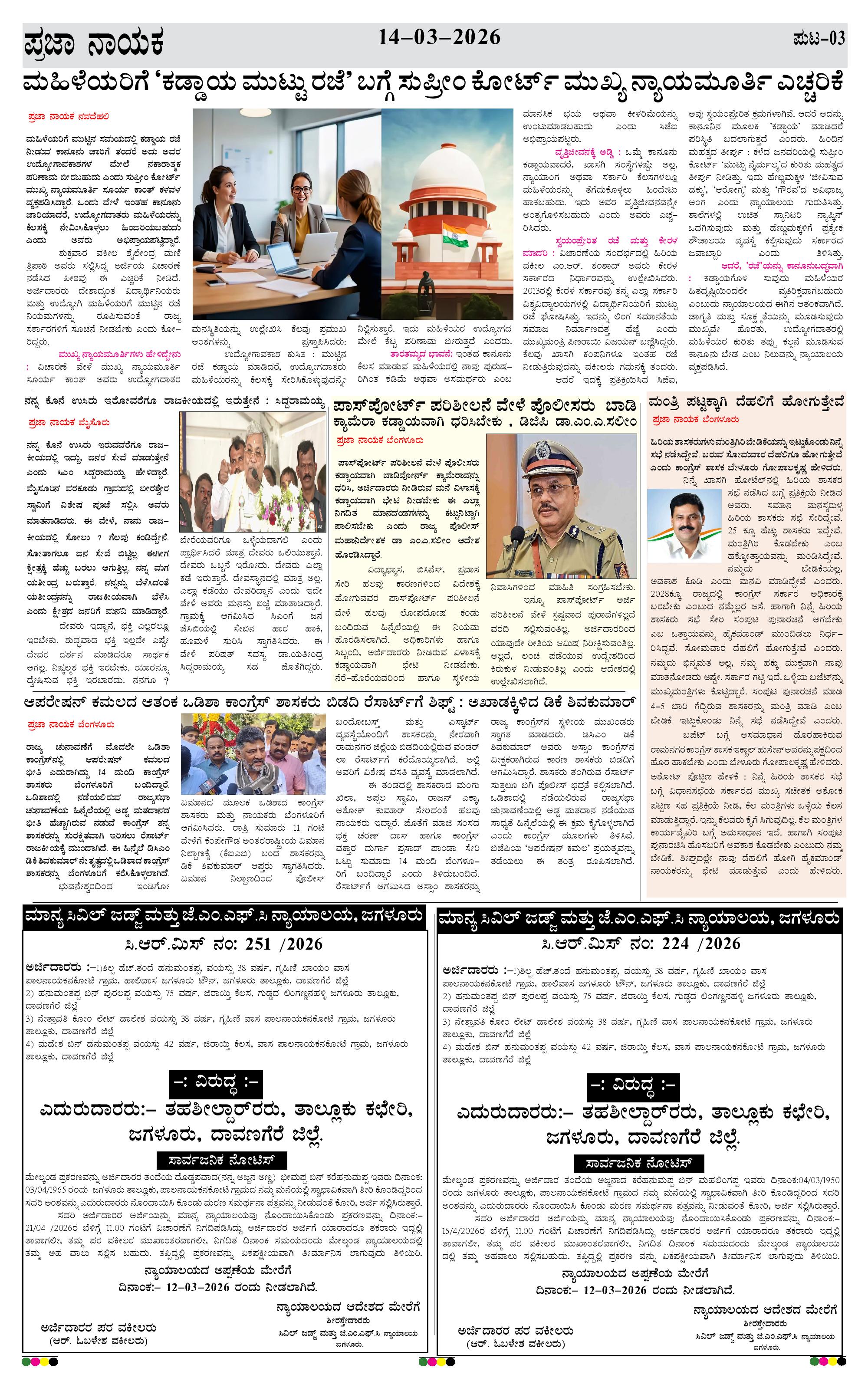 ಪ್ರಜಾ ನಾಯಕ 14 MAR 2026 Page: 3 March 14, 2026 << First << 3 >> Last >> Page 1Page 2Page 3Page 4 × ಪ್ರಜಾ ನಾಯಕ 14 MAR 2026 PRAJA NAYAKA 14-03-2026..-page-001PRAJA NAYAKA 14-03-2026..-page-002PRAJA NAYAKA 14-03-2026..-page-003PRAJA NAYAKA 14-03-2026..-page-004 << First << 3 >> Last >> PRAJA NAYAKA 14-03-2026..-page-001PRAJA NAYAKA 14-03-2026..-page-002PRAJA NAYAKA 14-03-2026..-page-003PRAJA NAYAKA 14-03-2026..-page-004 PRAJA NAYAKA 14-03-2026..-page-003