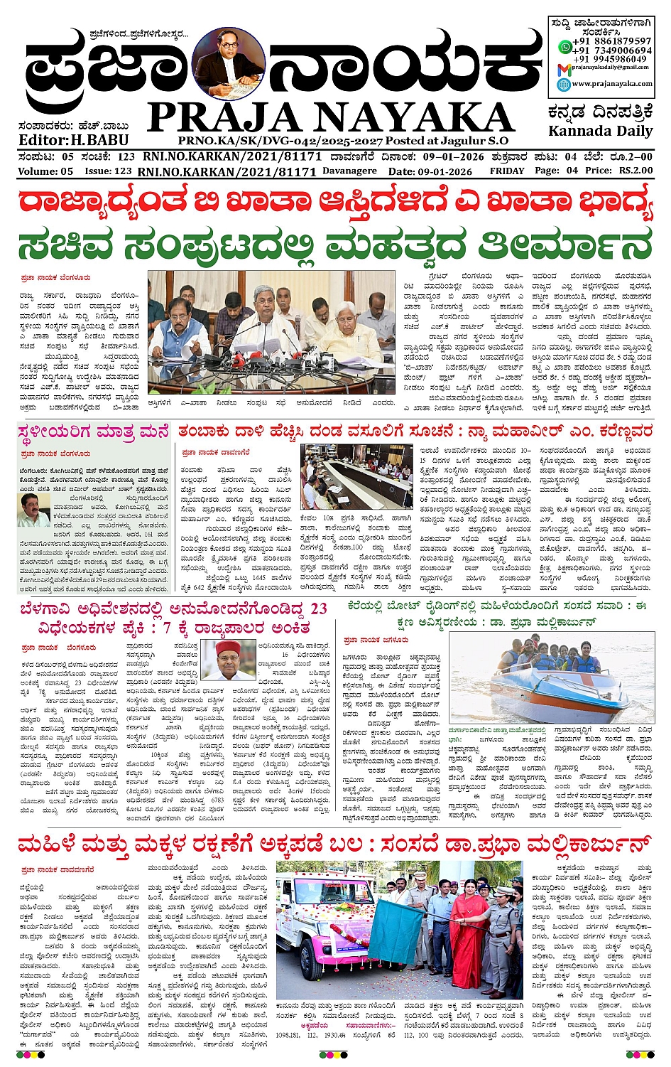 ಪ್ರಜಾ ನಾಯಕ 09 JAN 2026 January 09, 2026 << First << 1 >> Last >> Page 1Page 2Page 3Page 4 × ಪ್ರಜಾ ನಾಯಕ 09 JAN 2026 PRAJA NAYAKA (73)-page-001PRAJA NAYAKA (73)-page-002PRAJA NAYAKA (73)-page-003PRAJA NAYAKA (73)-page-004 << First << 1 >> Last >> PRAJA NAYAKA (73)-page-001PRAJA NAYAKA (73)-page-002PRAJA NAYAKA (73)-page-003PRAJA NAYAKA (73)-page-004 PRAJA NAYAKA (73)-page-001