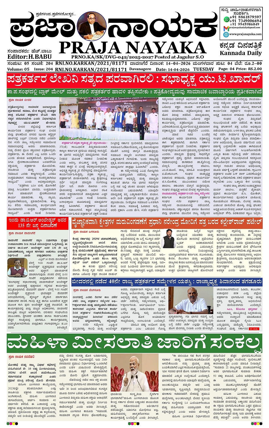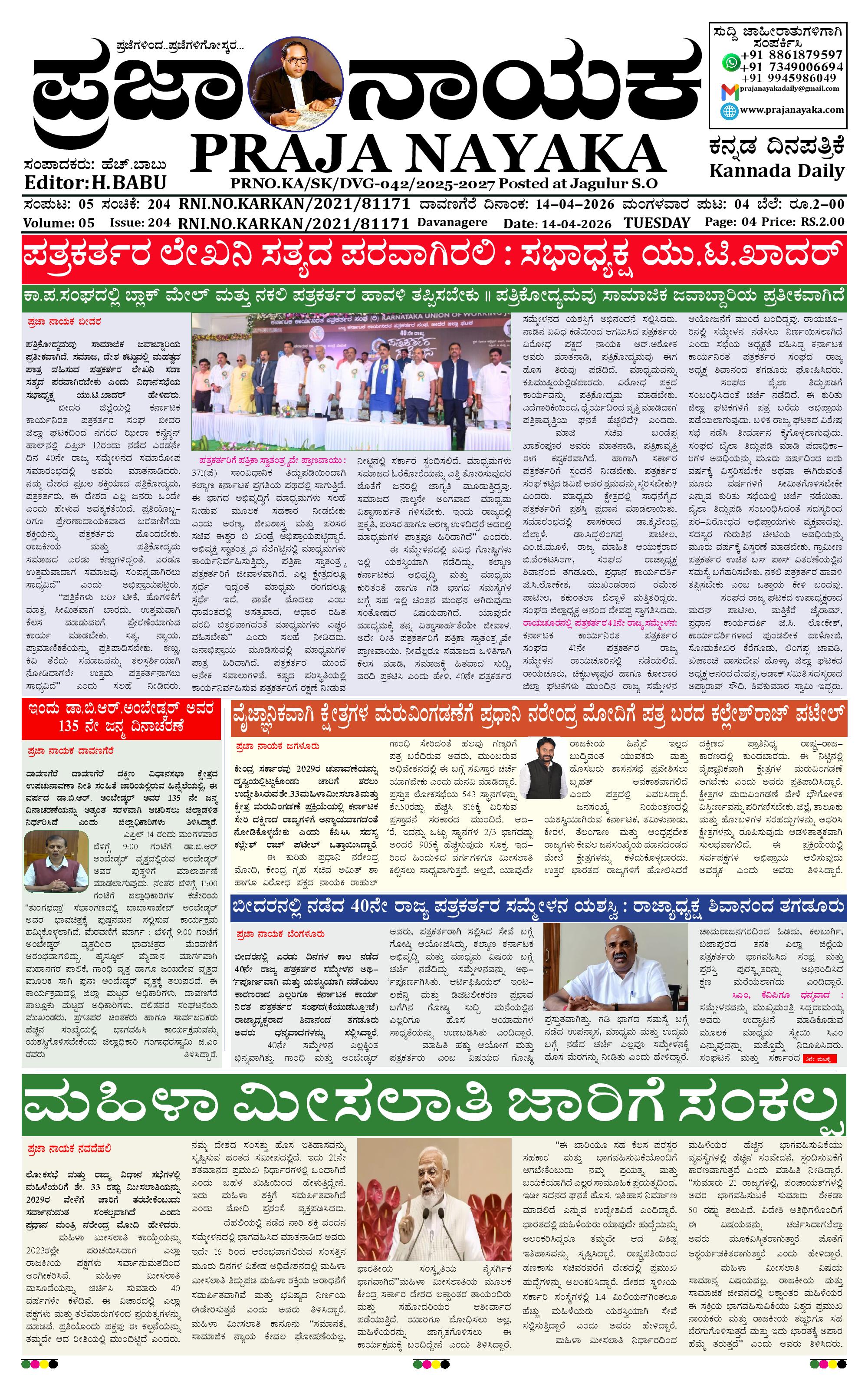 ಪ್ರಜಾ ನಾಯಕ 14 APR 2026 April 14, 2026 << First << 1 >> Last >> Page 1Page 2Page 3Page 4 × ಪ್ರಜಾ ನಾಯಕ 14 APR 2026 PRAJA NAYAKA (139)-page-001PRAJA NAYAKA (139)-page-002PRAJA NAYAKA (139)-page-003PRAJA NAYAKA (139)-page-004 << First << 1 >> Last >> PRAJA NAYAKA (139)-page-001PRAJA NAYAKA (139)-page-002PRAJA NAYAKA (139)-page-003PRAJA NAYAKA (139)-page-004 PRAJA NAYAKA (139)-page-001