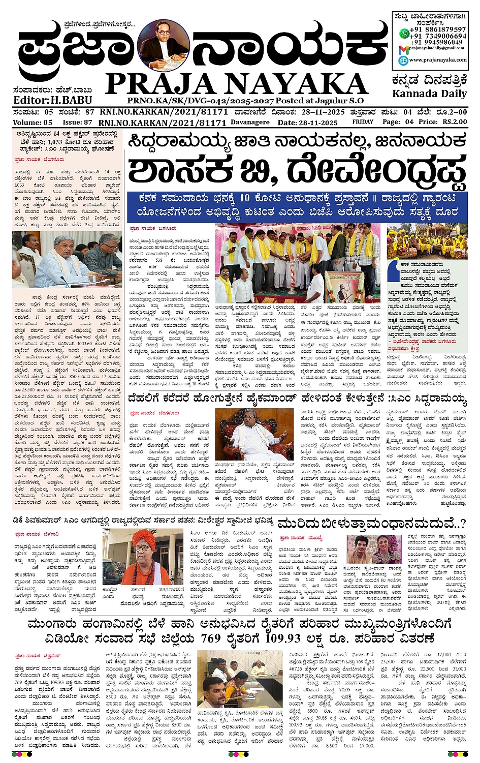 ಪ್ರಜಾ ನಾಯಕ 28 NOV 2025 November 28, 2025 << First << 1 >> Last >> Page 1Page 2Page 3Page 4 × ಪ್ರಜಾ ನಾಯಕ 28 NOV 2025 PRAJA NAYAKA (40)-page-001PRAJA NAYAKA (40)-page-002PRAJA NAYAKA (40)-page-003PRAJA NAYAKA (40)-page-004 << First << 1 >> Last >> PRAJA NAYAKA (40)-page-001PRAJA NAYAKA (40)-page-002PRAJA NAYAKA (40)-page-003PRAJA NAYAKA (40)-page-004 PRAJA NAYAKA (40)-page-001