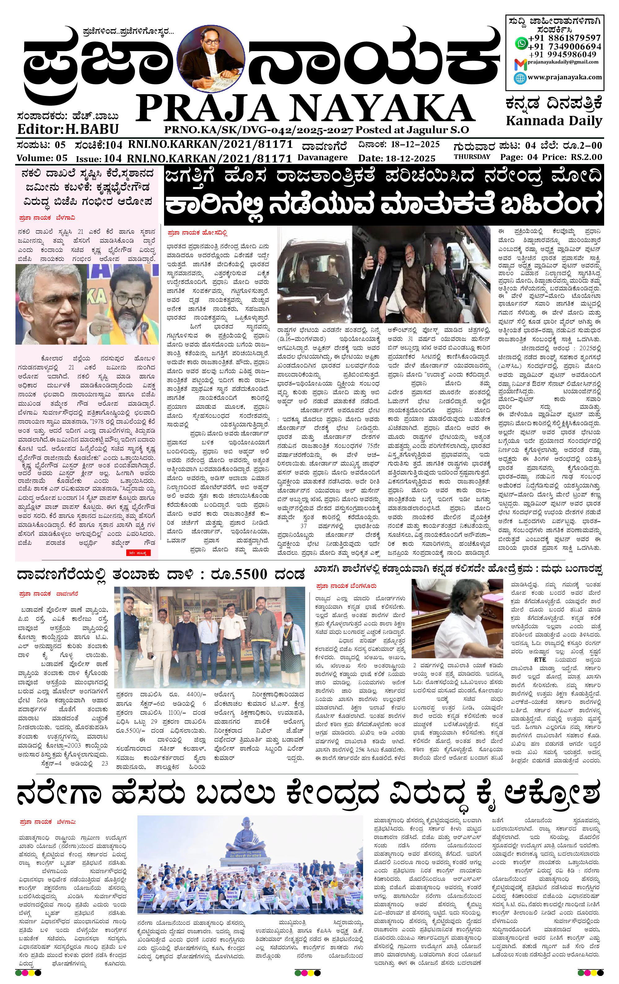 ಪ್ರಜಾ ನಾಯಕ 18 DEC 2025 December 18, 2025 << First << 1 >> Last >> Page 1Page 2Page 3Page 4 × ಪ್ರಜಾ ನಾಯಕ 18 DEC 2025 PRAJA NAYAKA (55)-page-001PRAJA NAYAKA (55)-page-002PRAJA NAYAKA (55)-page-003PRAJA NAYAKA (55)-page-004 << First << 1 >> Last >> PRAJA NAYAKA (55)-page-001PRAJA NAYAKA (55)-page-002PRAJA NAYAKA (55)-page-003PRAJA NAYAKA (55)-page-004 PRAJA NAYAKA (55)-page-001