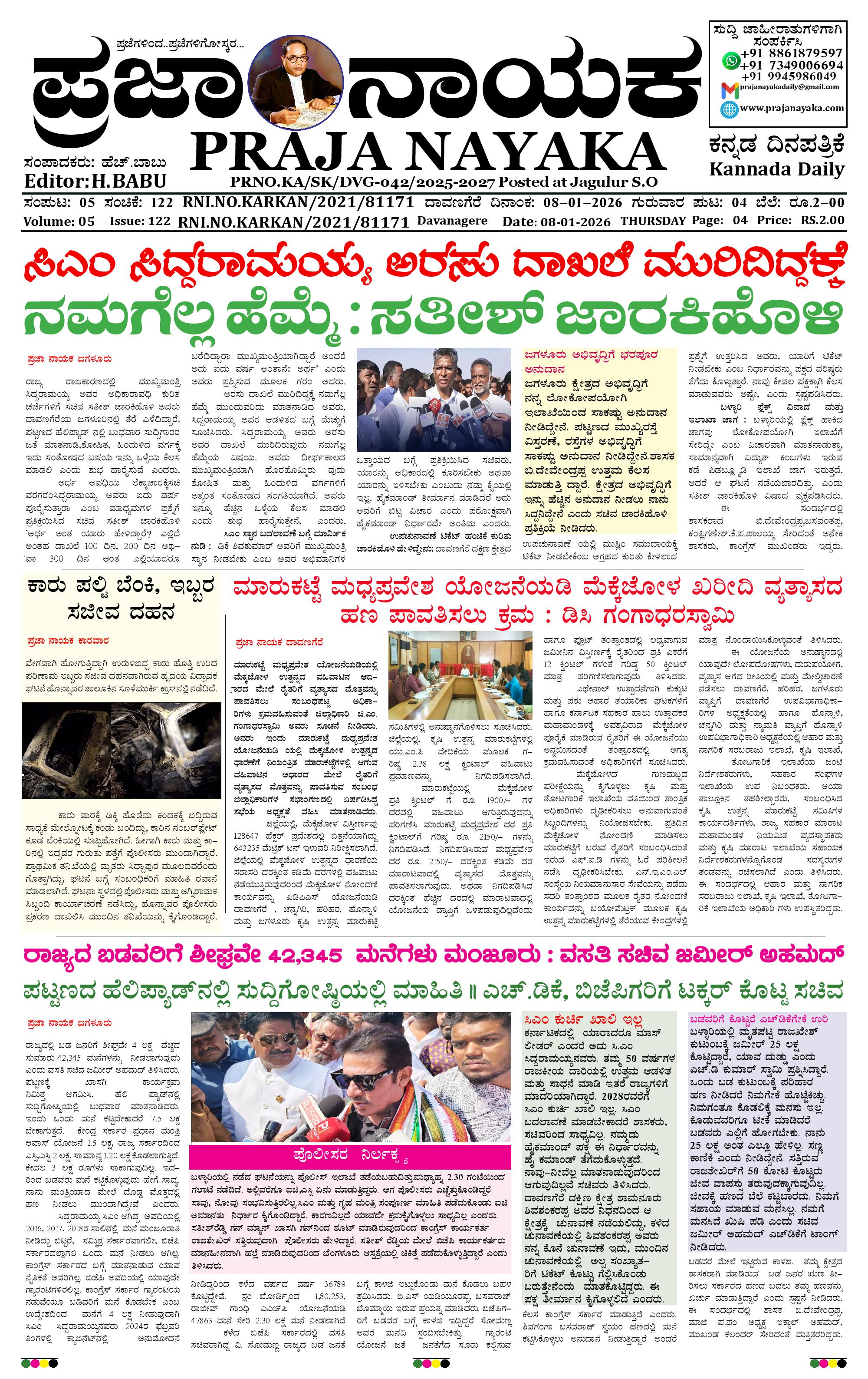 ಪ್ರಜಾ ನಾಯಕ 08 JAN 2026 January 08, 2026 << First << 1 >> Last >> Page 1Page 2Page 3Page 4 × ಪ್ರಜಾ ನಾಯಕ 08 JAN 2026 PRAJA NAYAKA (72)-page-001PRAJA NAYAKA (72)-page-002PRAJA NAYAKA (72)-page-003PRAJA NAYAKA (72)-page-004 << First << 1 >> Last >> PRAJA NAYAKA (72)-page-001PRAJA NAYAKA (72)-page-002PRAJA NAYAKA (72)-page-003PRAJA NAYAKA (72)-page-004 PRAJA NAYAKA (72)-page-001