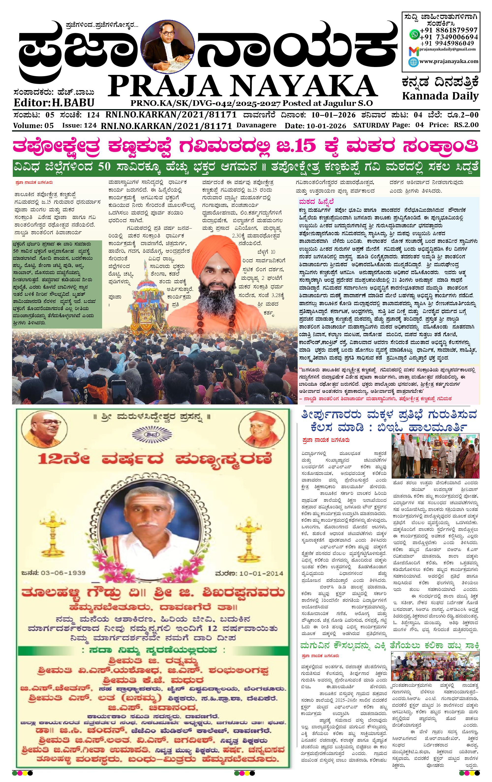ಪ್ರಜಾ ನಾಯಕ 10 JAN 2026 January 10, 2026 << First << 1 >> Last >> Page 1Page 2Page 3Page 4 × ಪ್ರಜಾ ನಾಯಕ 10 JAN 2026 PRAJA NAYAKA (74)-page-001PRAJA NAYAKA (74)-page-002PRAJA NAYAKA (74)-page-003PRAJA NAYAKA (74)-page-004 << First << 1 >> Last >> PRAJA NAYAKA (74)-page-001PRAJA NAYAKA (74)-page-002PRAJA NAYAKA (74)-page-003PRAJA NAYAKA (74)-page-004 PRAJA NAYAKA (74)-page-001