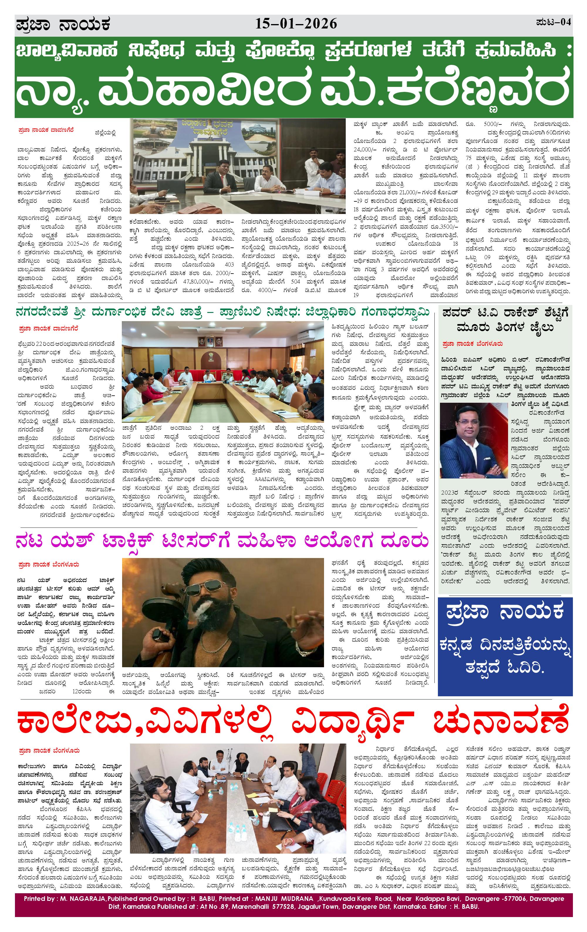 ಪ್ರಜಾ ನಾಯಕ 15 JAN 2026 Page: 4 January 15, 2026 << First << 4 >> Last >> Page 1Page 2Page 3Page 4 × ಪ್ರಜಾ ನಾಯಕ 15 JAN 2026 PRAJA NAYAKA-page-001PRAJA NAYAKA-page-002PRAJA NAYAKA-page-003PRAJA NAYAKA-page-004 << First << 4 >> Last >> PRAJA NAYAKA-page-001PRAJA NAYAKA-page-002PRAJA NAYAKA-page-003PRAJA NAYAKA-page-004 PRAJA NAYAKA-page-004