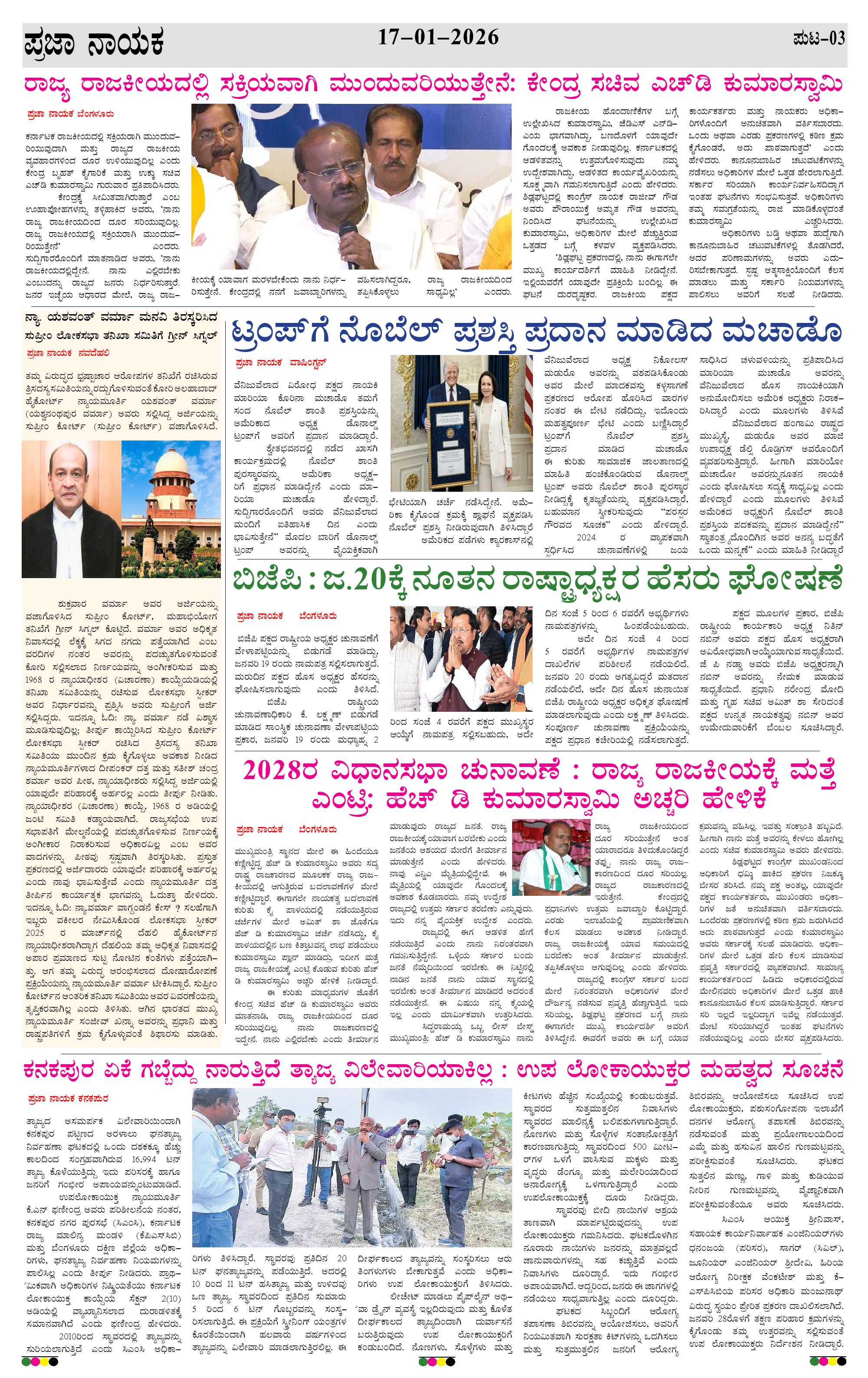 ಪ್ರಜಾ ನಾಯಕ 17JAN 2026 Page: 3 January 17, 2026 << First << 3 >> Last >> Page 1Page 2Page 3Page 4 × ಪ್ರಜಾ ನಾಯಕ 17JAN 2026 PRAJA NAYAKA (3)-page-001PRAJA NAYAKA (3)-page-002PRAJA NAYAKA (3)-page-003PRAJA NAYAKA (3)-page-004 << First << 3 >> Last >> PRAJA NAYAKA (3)-page-001PRAJA NAYAKA (3)-page-002PRAJA NAYAKA (3)-page-003PRAJA NAYAKA (3)-page-004 PRAJA NAYAKA (3)-page-003