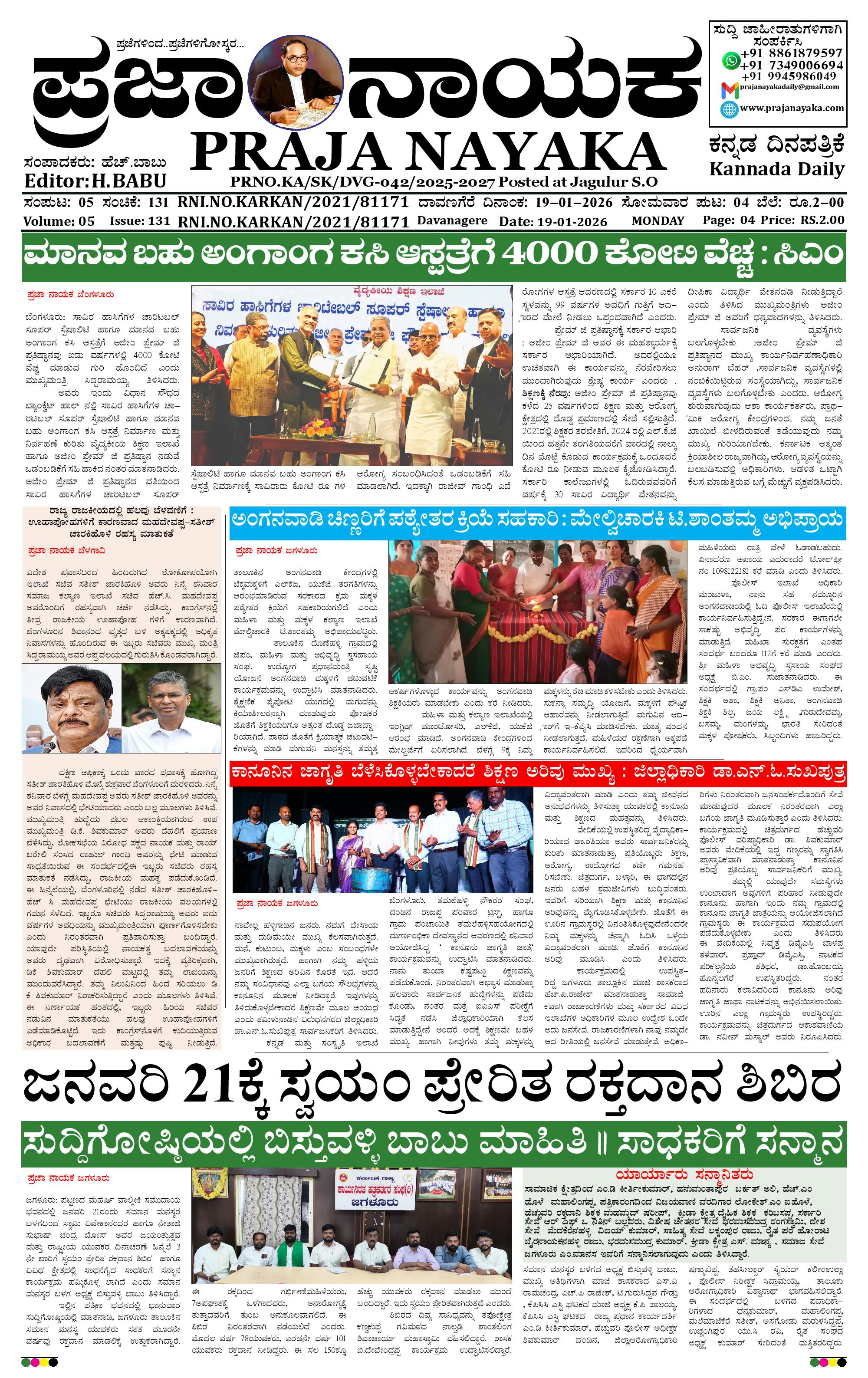 ಪ್ರಜಾ ನಾಯಕ 19 JAN 2026 January 19, 2026 << First << 1 >> Last >> Page 1Page 2Page 3Page 4 × ಪ್ರಜಾ ನಾಯಕ 19 JAN 2026 PRAJA NAYAKA (78)-page-001PRAJA NAYAKA (78)-page-002PRAJA NAYAKA (78)-page-003PRAJA NAYAKA (78)-page-004 << First << 1 >> Last >> PRAJA NAYAKA (78)-page-001PRAJA NAYAKA (78)-page-002PRAJA NAYAKA (78)-page-003PRAJA NAYAKA (78)-page-004 PRAJA NAYAKA (78)-page-001