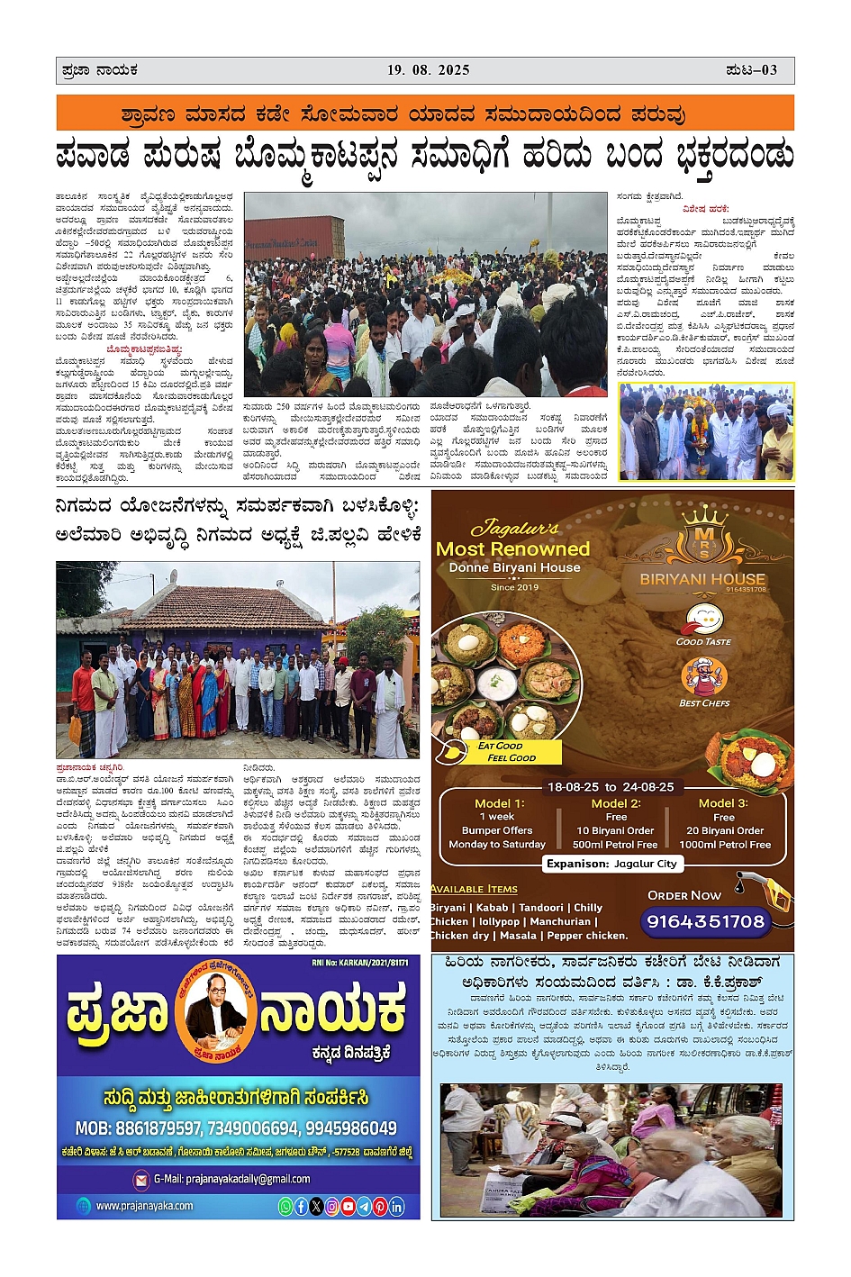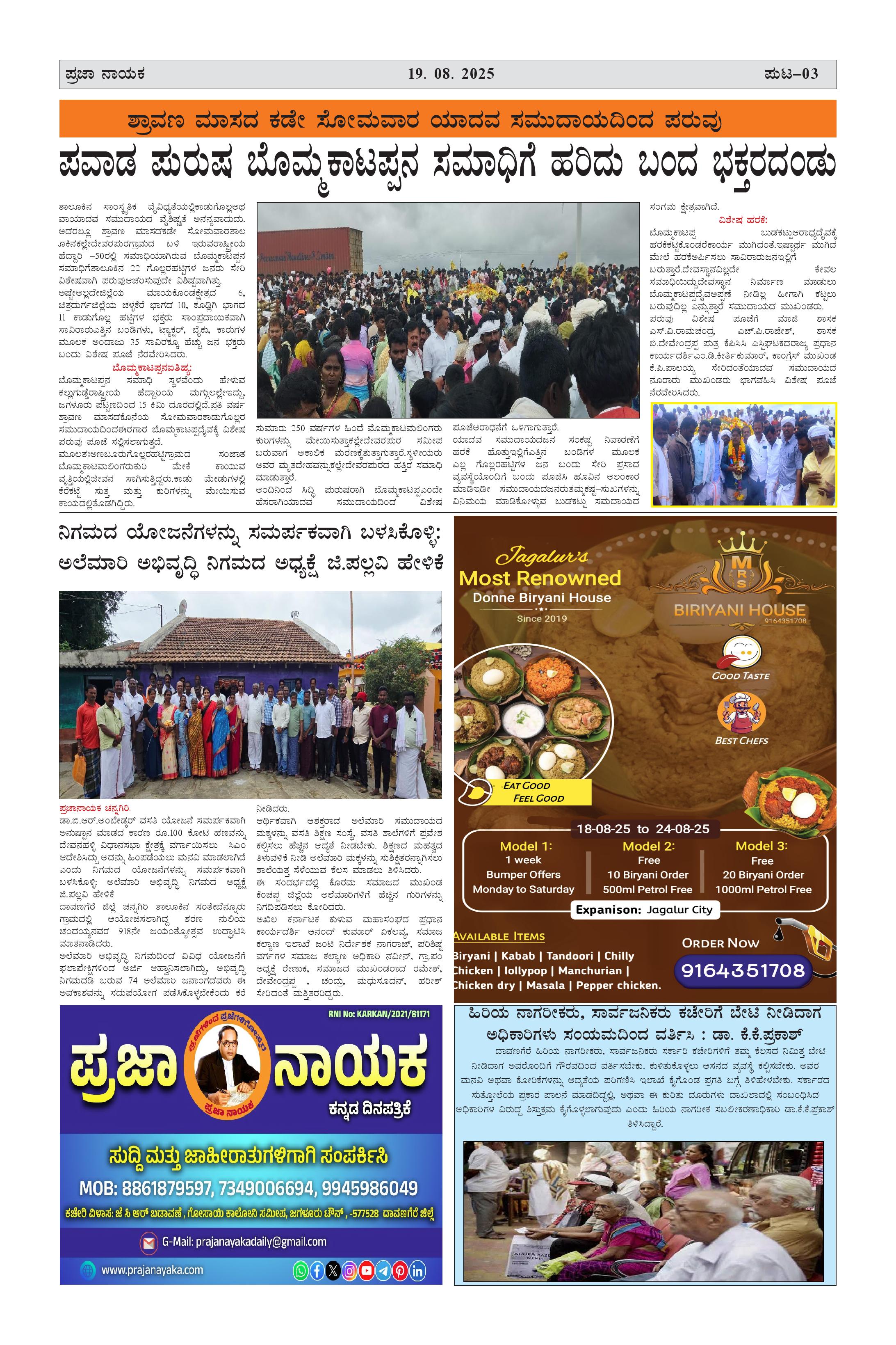 ಪ್ರಜಾ ನಾಯಕ 19 AUG 2025 Page: 3 August 19, 2025 << First << 3 >> Last >> Page 1Page 2Page 3Page 4 × ಪ್ರಜಾ ನಾಯಕ 19 AUG 2025 1234 << First << 3 >> Last >> 1234 3