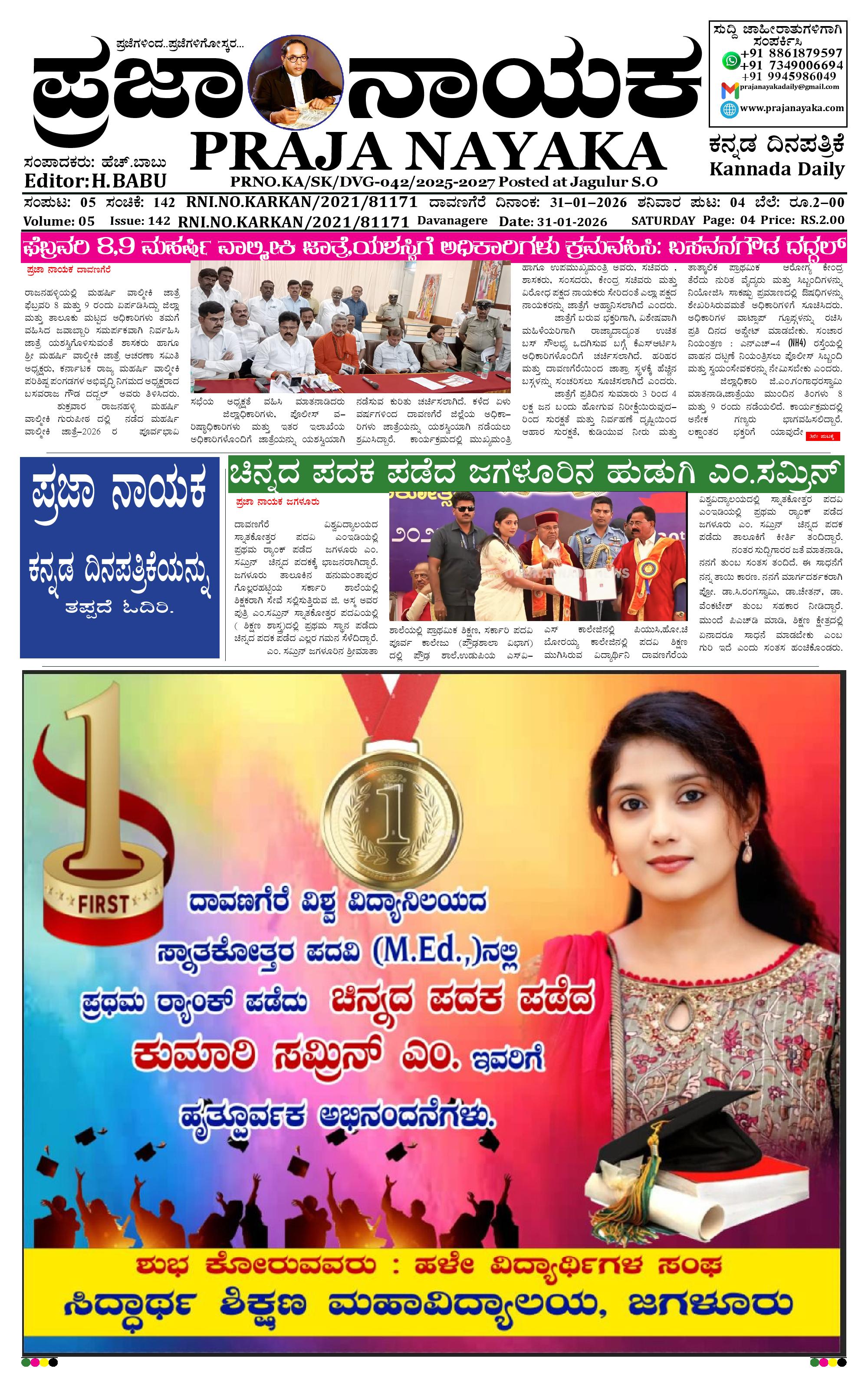 ಪ್ರಜಾ ನಾಯಕ 31 JAN 2026 January 31, 2026 << First << 1 >> Last >> Page 1Page 2Page 3Page 4 × ಪ್ರಜಾ ನಾಯಕ 31 JAN 2026 PRAJA NAYAKA.-page-001PRAJA NAYAKA.-page-002PRAJA NAYAKA.-page-003PRAJA NAYAKA.-page-004 << First << 1 >> Last >> PRAJA NAYAKA.-page-001PRAJA NAYAKA.-page-002PRAJA NAYAKA.-page-003PRAJA NAYAKA.-page-004 PRAJA NAYAKA.-page-001