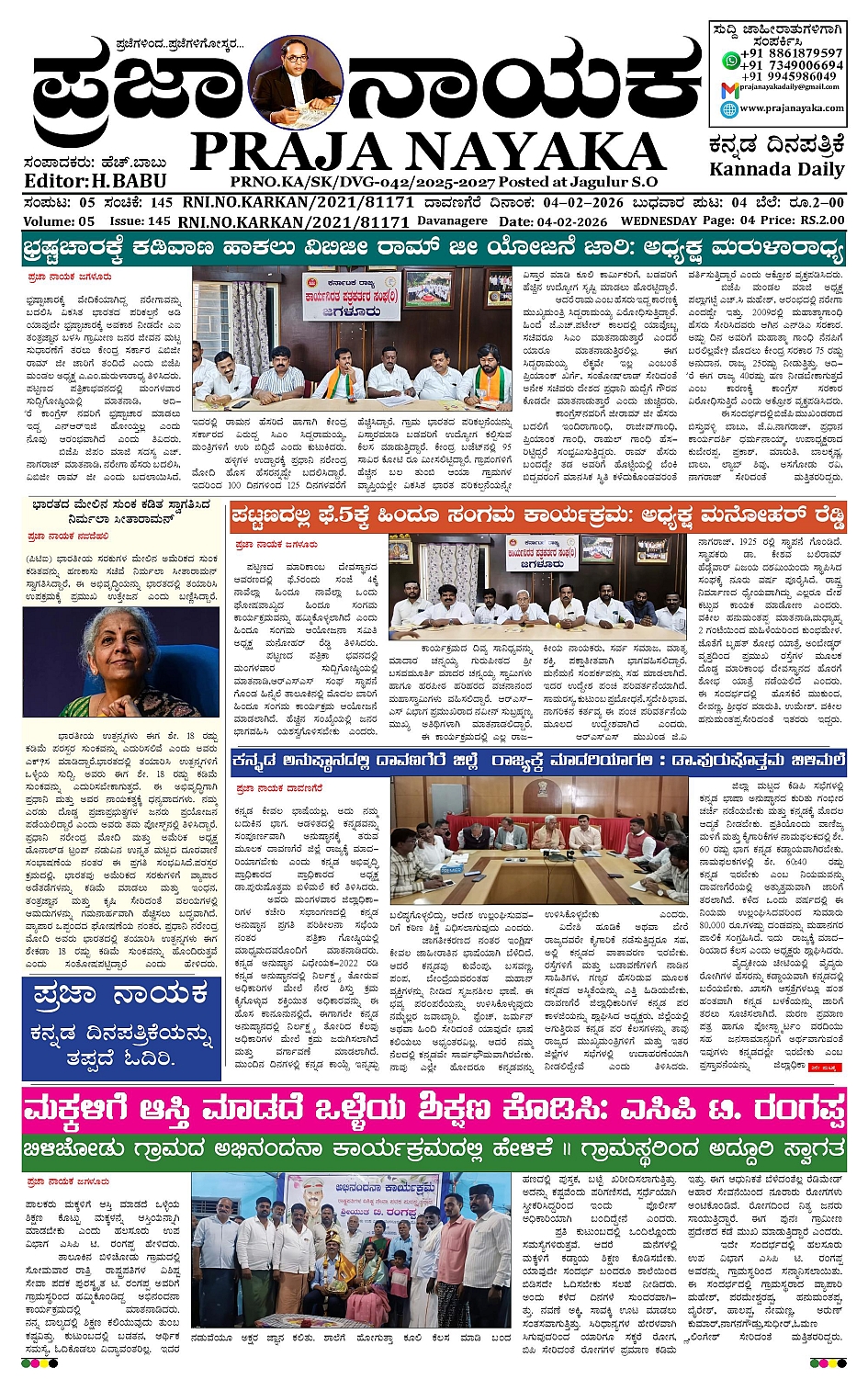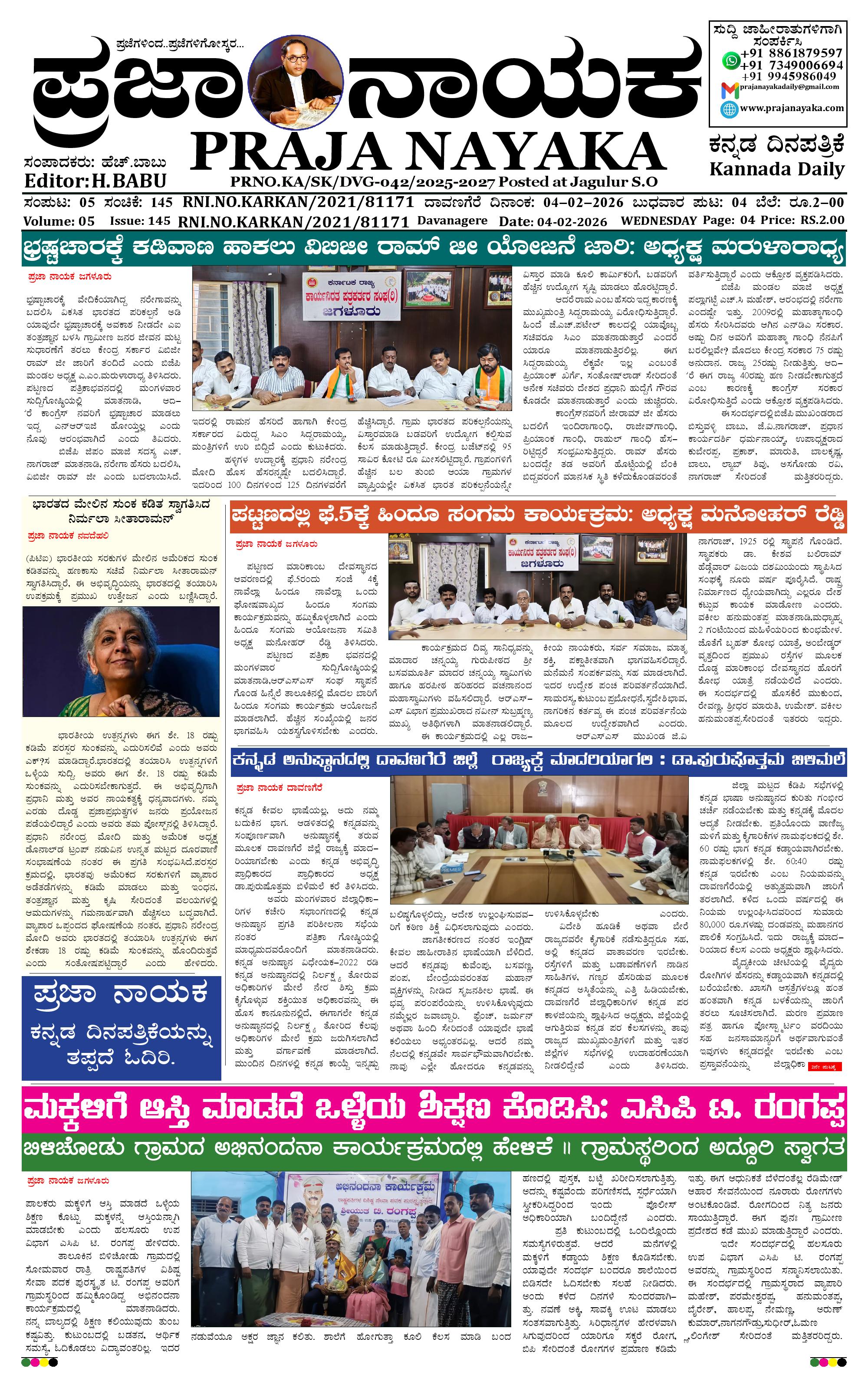 ಪ್ರಜಾ ನಾಯಕ 04 Feb 2026 February 04, 2026 << First << 1 >> Last >> Page 1Page 2Page 3Page 4 × ಪ್ರಜಾ ನಾಯಕ 04 Feb 2026 PRAJA NAYAKA (88)-page-001PRAJA NAYAKA (88)-page-002PRAJA NAYAKA (88)-page-003PRAJA NAYAKA (88)-page-004 << First << 1 >> Last >> PRAJA NAYAKA (88)-page-001PRAJA NAYAKA (88)-page-002PRAJA NAYAKA (88)-page-003PRAJA NAYAKA (88)-page-004 PRAJA NAYAKA (88)-page-001