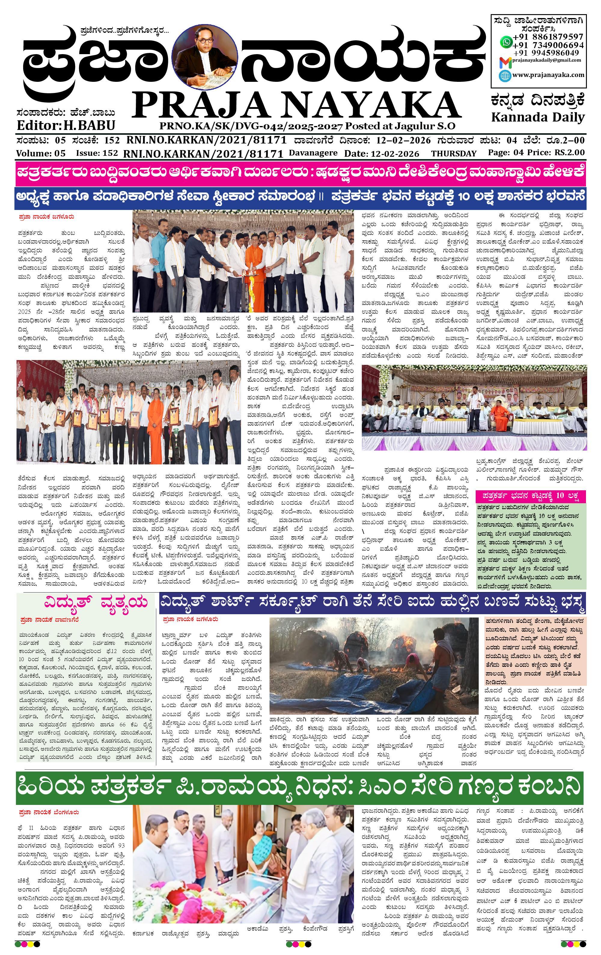 ಪ್ರಜಾ ನಾಯಕ 12 Feb 2026 February 12, 2026 << First << 1 >> Last >> Page 1Page 2Page 3Page 4 × ಪ್ರಜಾ ನಾಯಕ 12 Feb 2026 PRAJA NAYAKA (94)-page-001PRAJA NAYAKA (94)-page-002PRAJA NAYAKA (94)-page-003PRAJA NAYAKA (94)-page-004 << First << 1 >> Last >> PRAJA NAYAKA (94)-page-001PRAJA NAYAKA (94)-page-002PRAJA NAYAKA (94)-page-003PRAJA NAYAKA (94)-page-004 PRAJA NAYAKA (94)-page-001