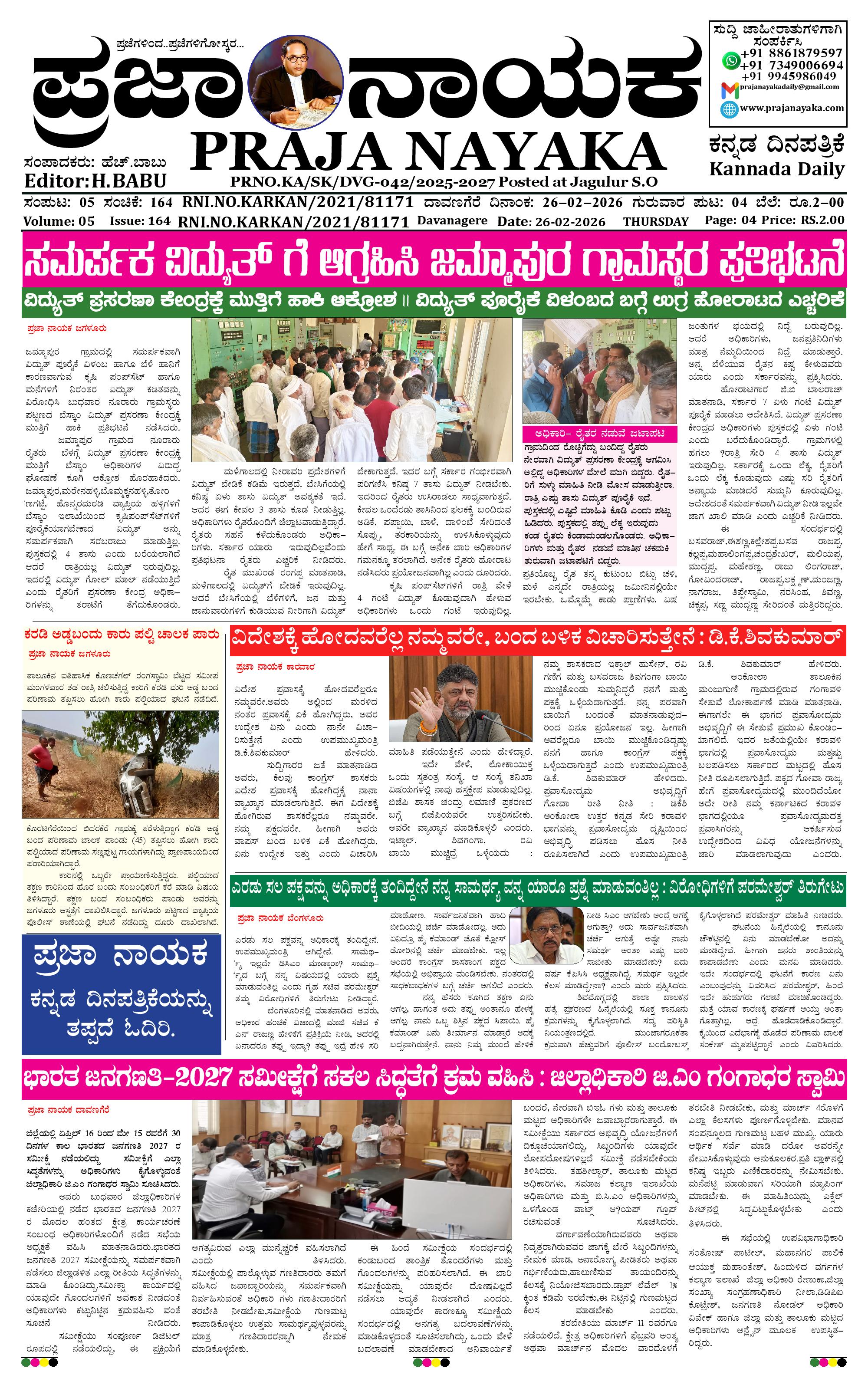 ಪ್ರಜಾ ನಾಯಕ 26 FEB 2026 February 26, 2026 << First << 1 >> Last >> Page 1Page 2Page 3Page 4 × ಪ್ರಜಾ ನಾಯಕ 26 FEB 2026 PRAJA NAYAKA (107)-page-001PRAJA NAYAKA (107)-page-002PRAJA NAYAKA (107)-page-003PRAJA NAYAKA (107)-page-004 << First << 1 >> Last >> PRAJA NAYAKA (107)-page-001PRAJA NAYAKA (107)-page-002PRAJA NAYAKA (107)-page-003PRAJA NAYAKA (107)-page-004 PRAJA NAYAKA (107)-page-001