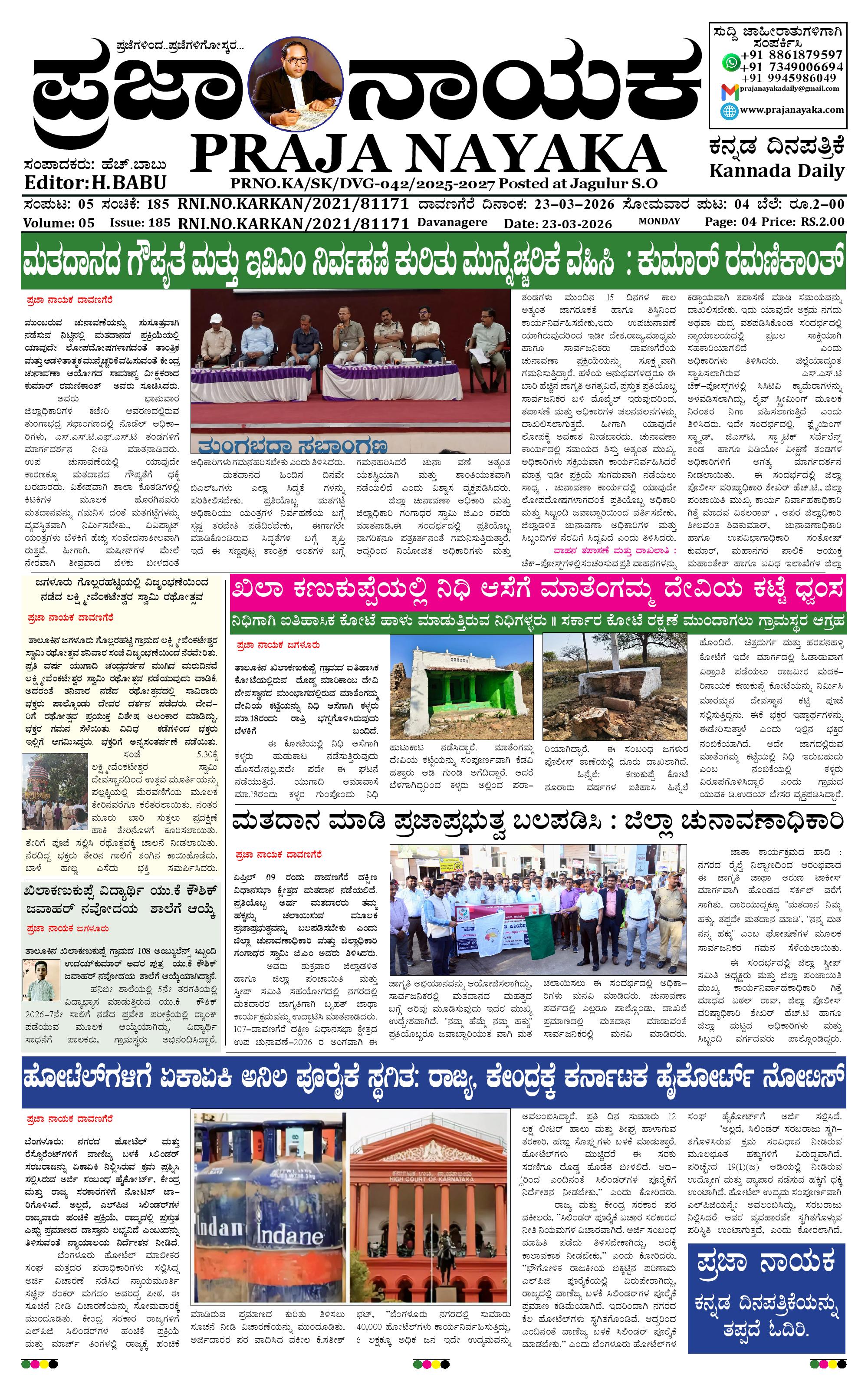 ಪ್ರಜಾ ನಾಯಕ 23 MAR 2026 March 23, 2026 << First << 1 >> Last >> Page 1Page 2Page 3Page 4 × ಪ್ರಜಾ ನಾಯಕ 23 MAR 2026 PRAJA NAYAKA (122)-page-001PRAJA NAYAKA (122)-page-002PRAJA NAYAKA (122)-page-003PRAJA NAYAKA (122)-page-004 << First << 1 >> Last >> PRAJA NAYAKA (122)-page-001PRAJA NAYAKA (122)-page-002PRAJA NAYAKA (122)-page-003PRAJA NAYAKA (122)-page-004 PRAJA NAYAKA (122)-page-001