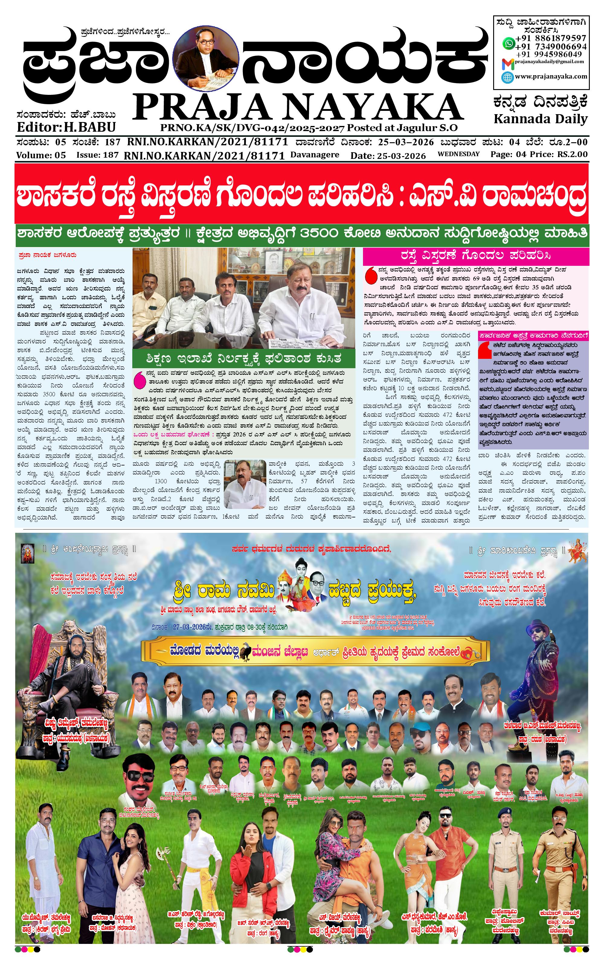 ಪ್ರಜಾ ನಾಯಕ 25 MAR 2026 March 25, 2026 << First << 1 >> Last >> Page 1Page 2Page 3Page 4 × ಪ್ರಜಾ ನಾಯಕ 25 MAR 2026 PRAJA NAYAKA (124)-page-001PRAJA NAYAKA (124)-page-002PRAJA NAYAKA (124)-page-003PRAJA NAYAKA (124)-page-004 << First << 1 >> Last >> PRAJA NAYAKA (124)-page-001PRAJA NAYAKA (124)-page-002PRAJA NAYAKA (124)-page-003PRAJA NAYAKA (124)-page-004 PRAJA NAYAKA (124)-page-001