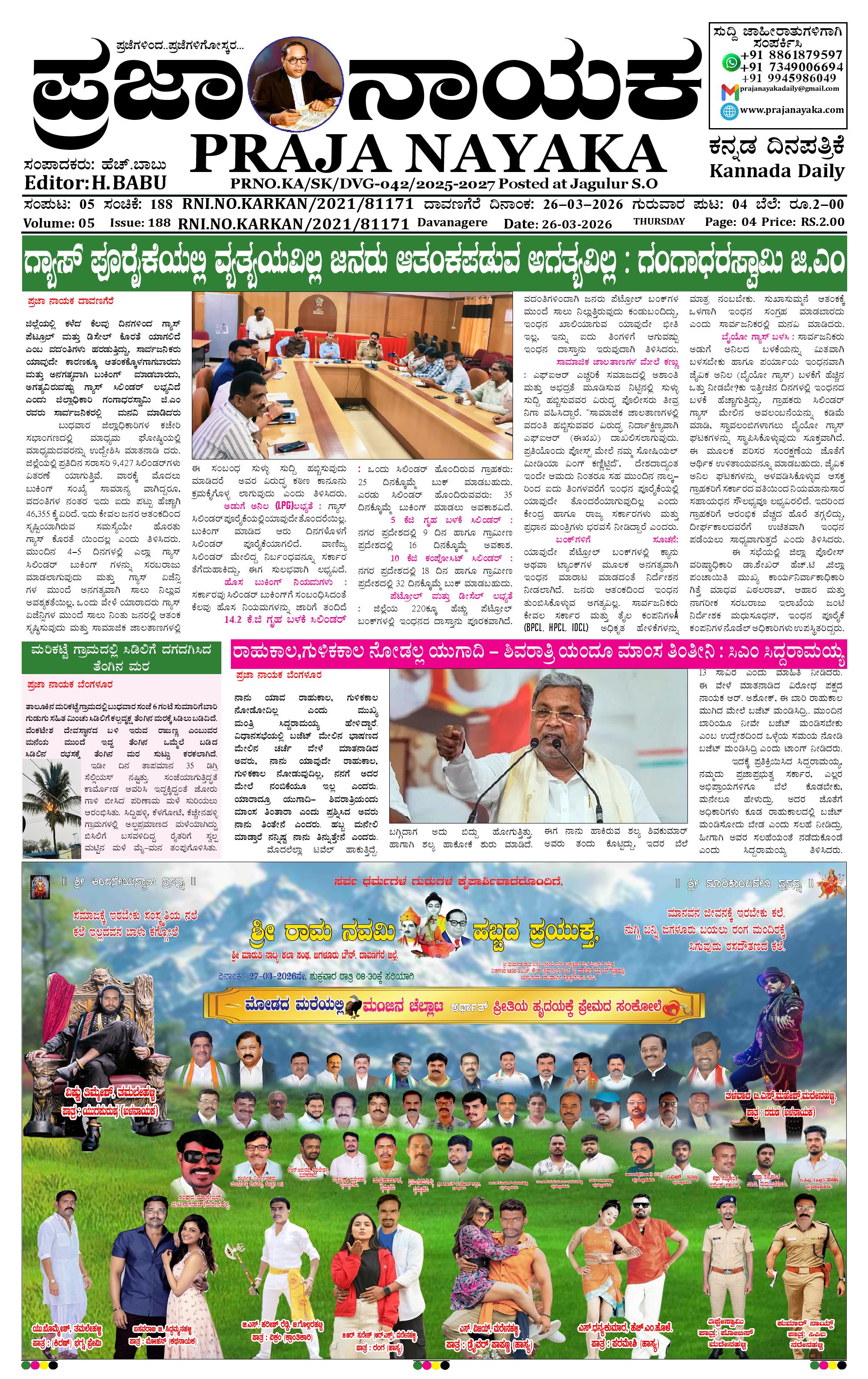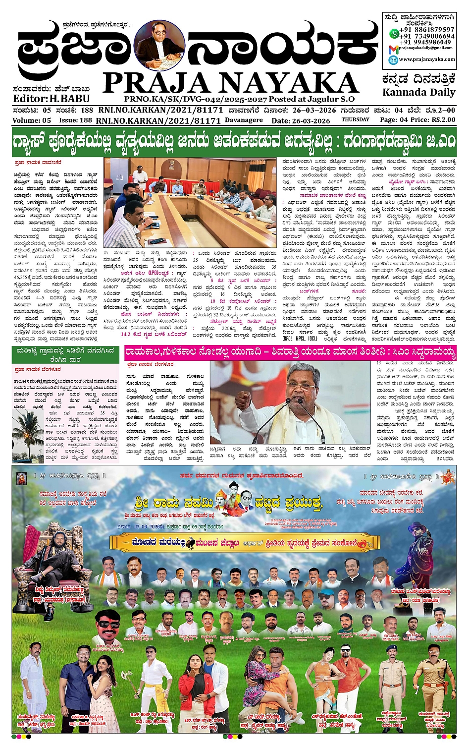ಪ್ರಜಾ ನಾಯಕ 26 MAR 2026 March 26, 2026 << First << 1 >> Last >> Page 1Page 2Page 3Page 4 × ಪ್ರಜಾ ನಾಯಕ 26 MAR 2026 PRAJA NAYAKA (125)-page-001PRAJA NAYAKA (125)-page-002PRAJA NAYAKA (125)-page-003PRAJA NAYAKA (125)-page-004 << First << 1 >> Last >> PRAJA NAYAKA (125)-page-001PRAJA NAYAKA (125)-page-002PRAJA NAYAKA (125)-page-003PRAJA NAYAKA (125)-page-004 PRAJA NAYAKA (125)-page-001
