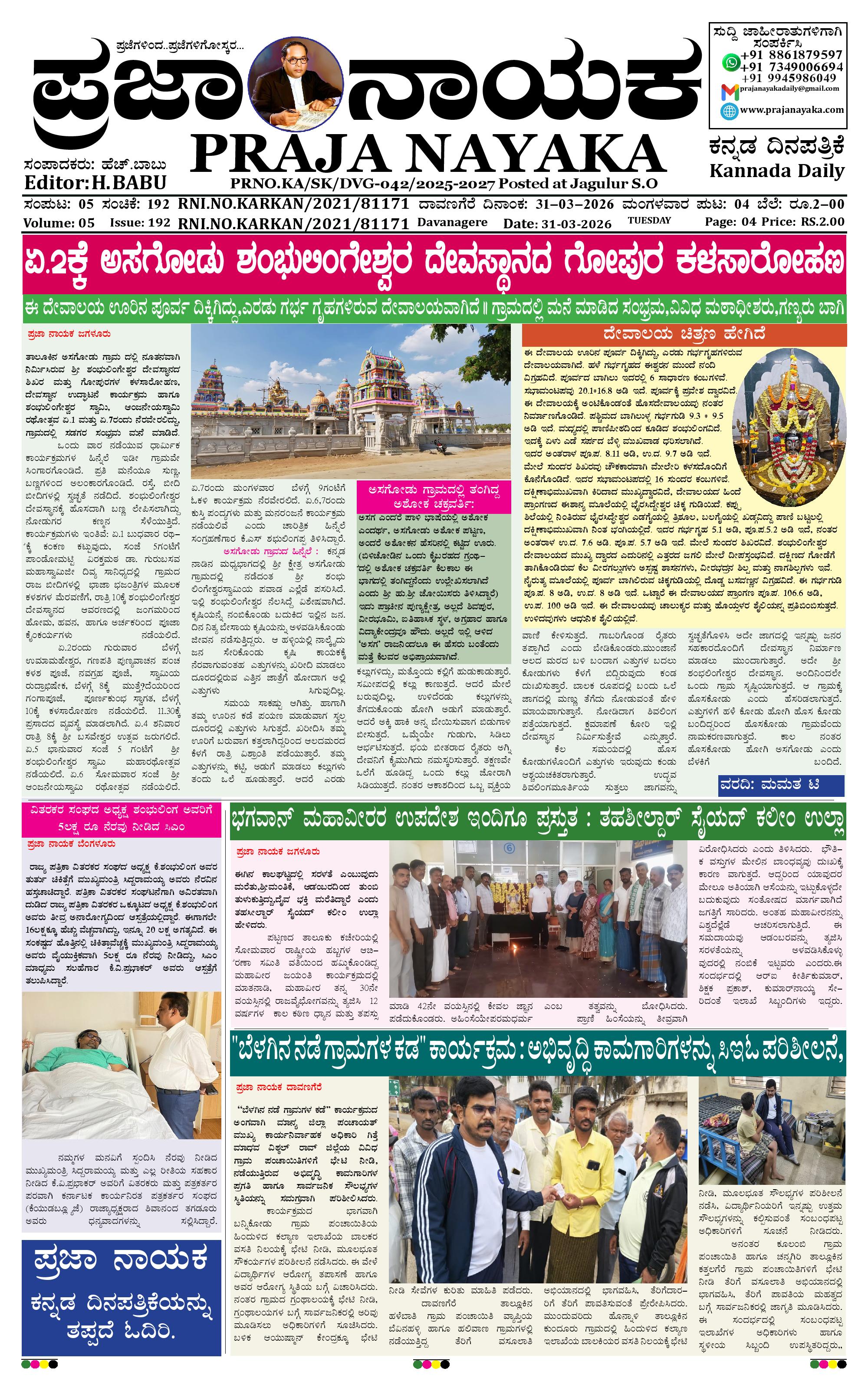 ಪ್ರಜಾ ನಾಯಕ 31 MAR 2026 March 31, 2026 << First << 1 >> Last >> Page 1Page 2Page 3Page 4 × ಪ್ರಜಾ ನಾಯಕ 31 MAR 2026 PRAJA NAYAKA (129)-page-001PRAJA NAYAKA (129)-page-002PRAJA NAYAKA (129)-page-003PRAJA NAYAKA (129)-page-004 << First << 1 >> Last >> PRAJA NAYAKA (129)-page-001PRAJA NAYAKA (129)-page-002PRAJA NAYAKA (129)-page-003PRAJA NAYAKA (129)-page-004 PRAJA NAYAKA (129)-page-001