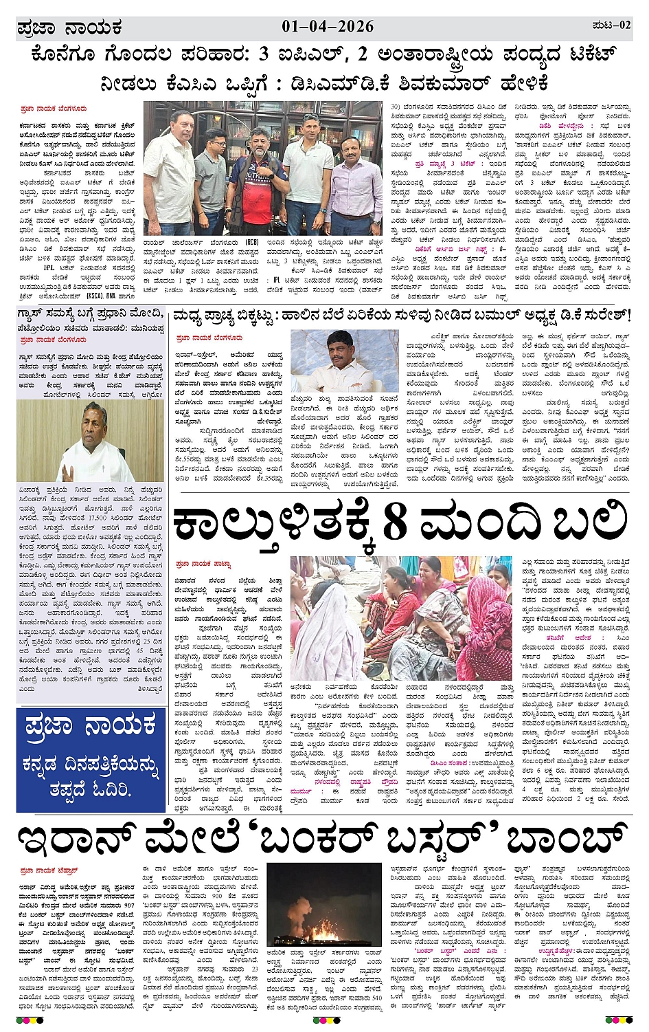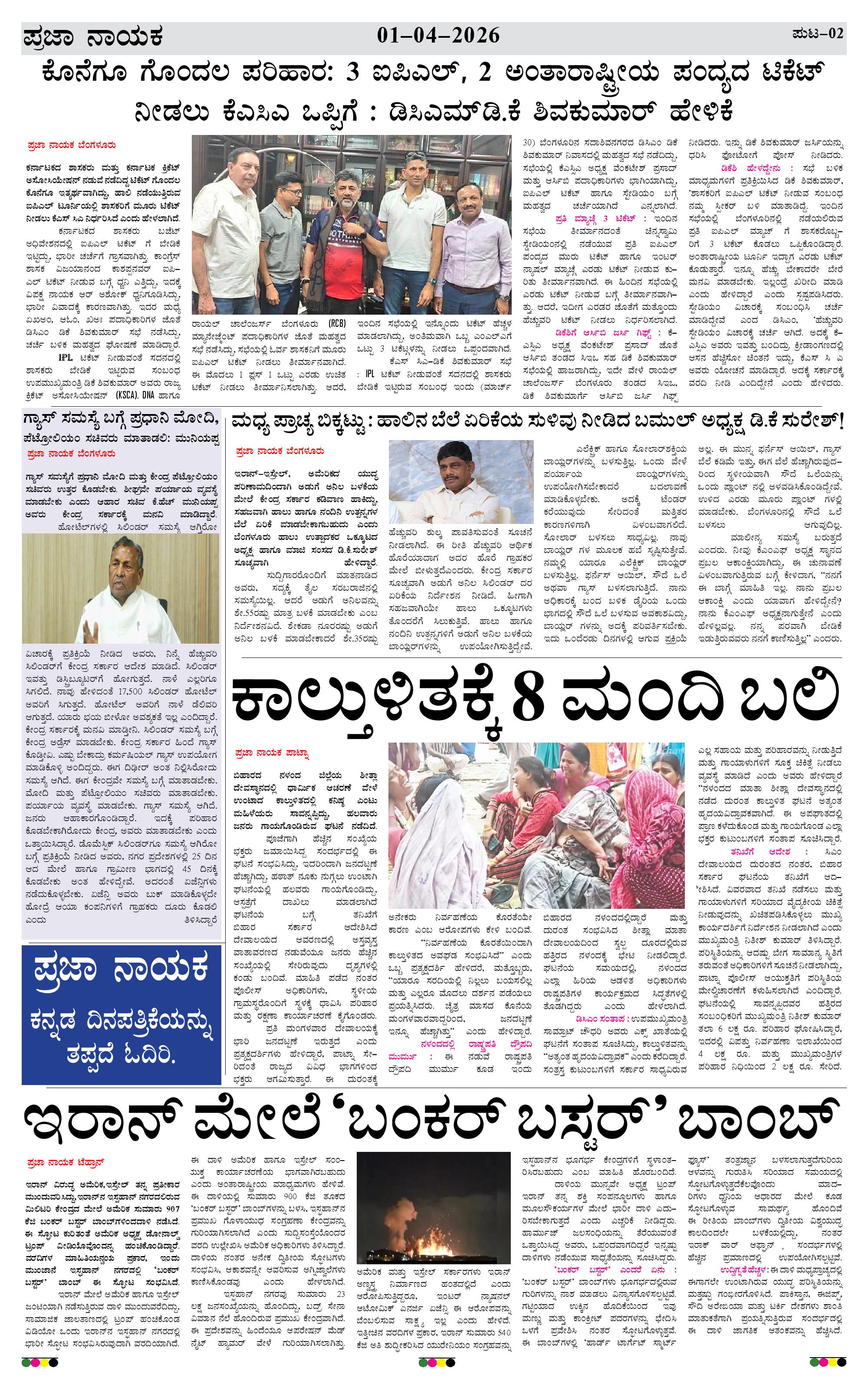 ಪ್ರಜಾ ನಾಯಕ 01 APRIL 2026 Page: 2 April 01, 2026 << First << 2 >> Last >> Page 1Page 2Page 3Page 4 × ಪ್ರಜಾ ನಾಯಕ 01 APRIL 2026 PRAJA NAYAKA (130)-page-001PRAJA NAYAKA (130)-page-002PRAJA NAYAKA (130)-page-003PRAJA NAYAKA (130)-page-004 << First << 2 >> Last >> PRAJA NAYAKA (130)-page-001PRAJA NAYAKA (130)-page-002PRAJA NAYAKA (130)-page-003PRAJA NAYAKA (130)-page-004 PRAJA NAYAKA (130)-page-002