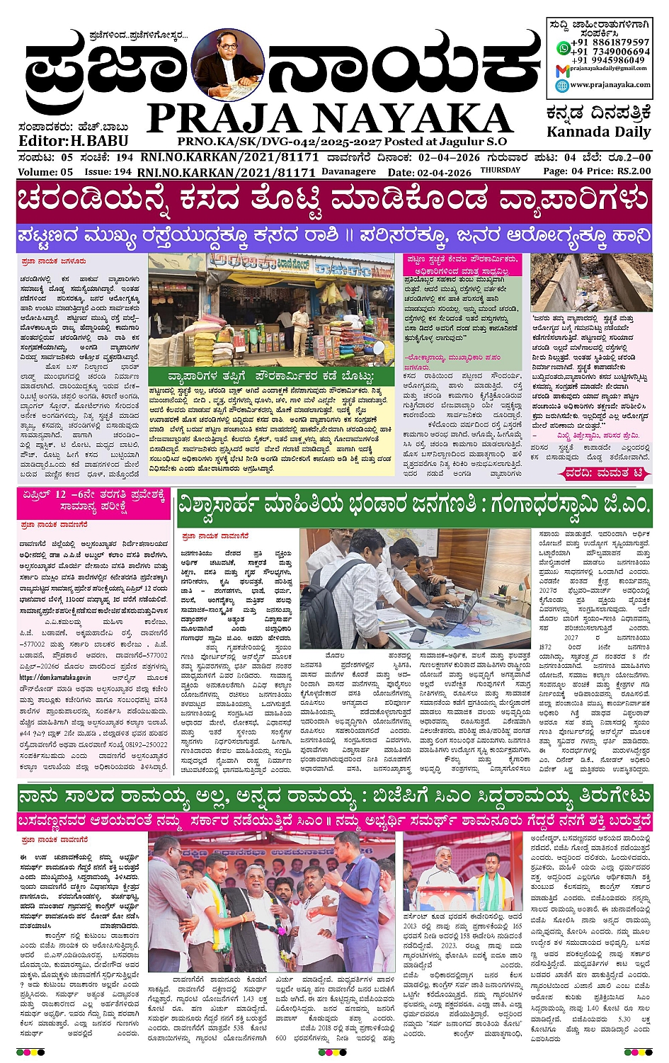 ಪ್ರಜಾ ನಾಯಕ 02 APR 2026 April 02, 2026 << First << 1 >> Last >> Page 1Page 2Page 3Page 4 × ಪ್ರಜಾ ನಾಯಕ 02 APR 2026 PRAJA NAYAKA (131)-page-001PRAJA NAYAKA (131)-page-002PRAJA NAYAKA (131)-page-003PRAJA NAYAKA (131)-page-004 << First << 1 >> Last >> PRAJA NAYAKA (131)-page-001PRAJA NAYAKA (131)-page-002PRAJA NAYAKA (131)-page-003PRAJA NAYAKA (131)-page-004 PRAJA NAYAKA (131)-page-001