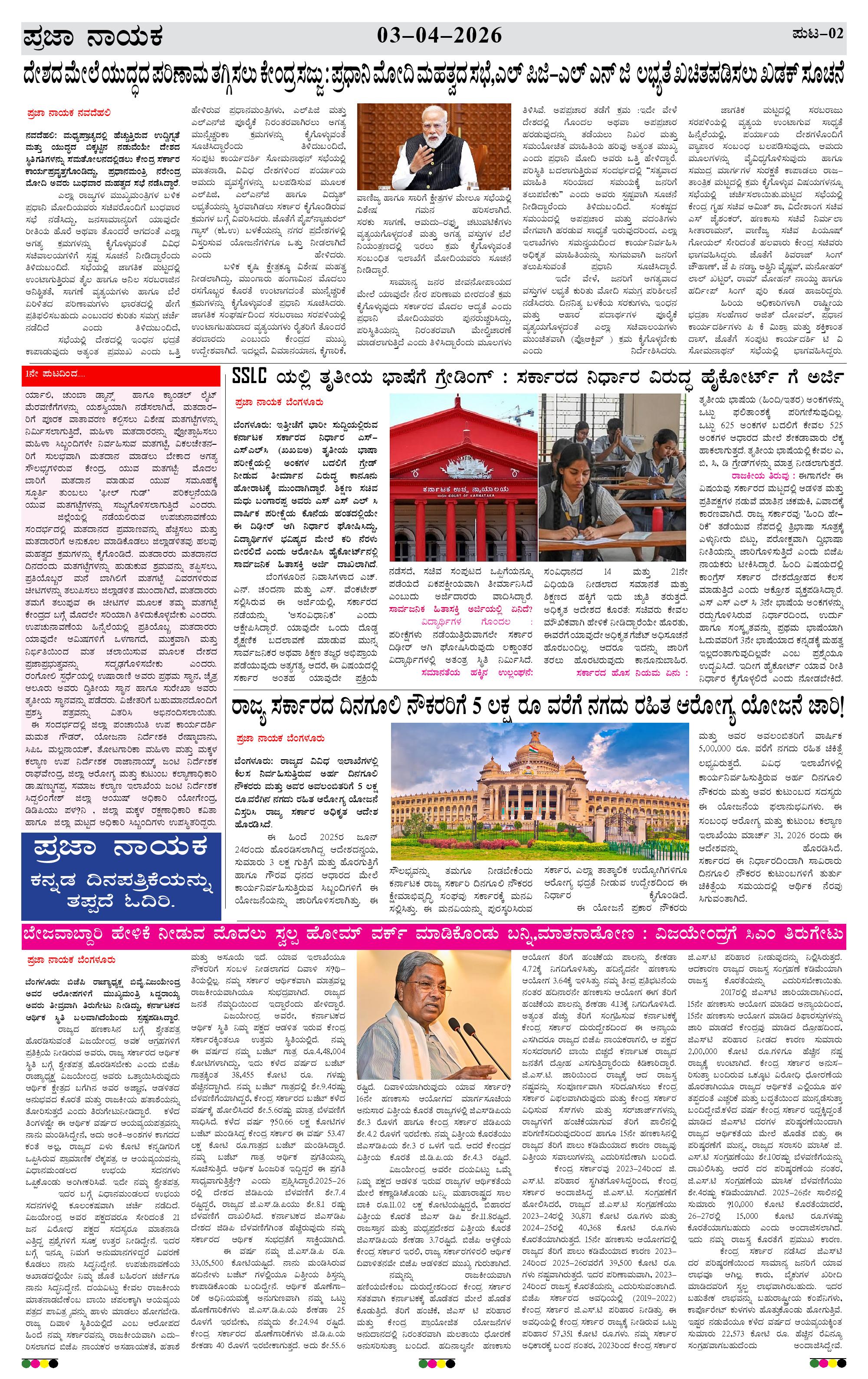 ಪ್ರಜಾ ನಾಯಕ 03 APR 2026 Page: 2 April 03, 2026 << First << 2 >> Last >> Page 1Page 2Page 3Page 4 × ಪ್ರಜಾ ನಾಯಕ 03 APR 2026 PRAJA NAYAKA (132)-page-001PRAJA NAYAKA (132)-page-002PRAJA NAYAKA (132)-page-003PRAJA NAYAKA (132)-page-004 << First << 2 >> Last >> PRAJA NAYAKA (132)-page-001PRAJA NAYAKA (132)-page-002PRAJA NAYAKA (132)-page-003PRAJA NAYAKA (132)-page-004 PRAJA NAYAKA (132)-page-002