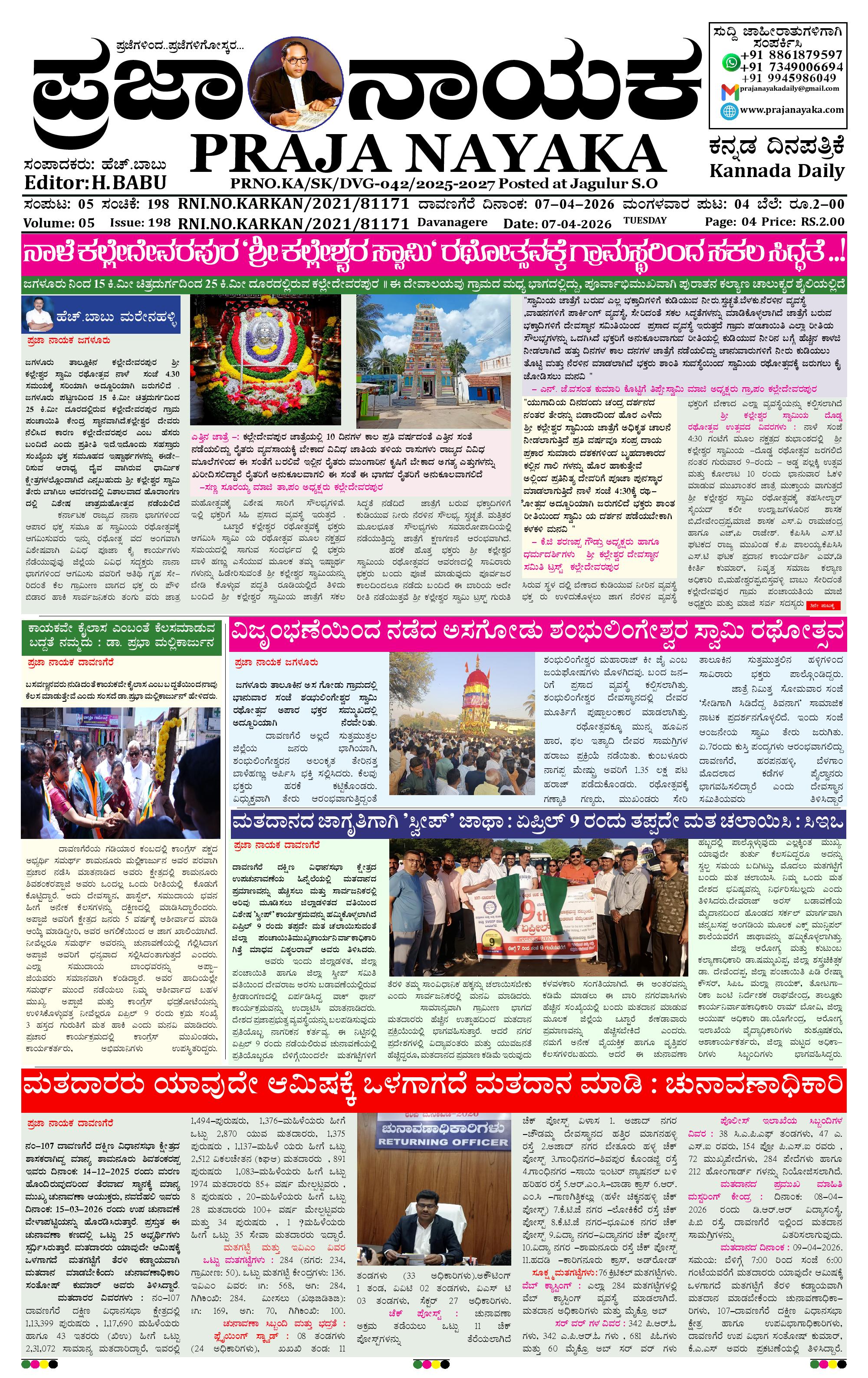 ಪ್ರಜಾ ನಾಯಕ 07 APR 2026 April 07, 2026 << First << 1 >> Last >> Page 1Page 2Page 3Page 4 × ಪ್ರಜಾ ನಾಯಕ 07 APR 2026 PRAJA NAYAKA (134)-page-001PRAJA NAYAKA (134)-page-002PRAJA NAYAKA (134)-page-003PRAJA NAYAKA (134)-page-004 << First << 1 >> Last >> PRAJA NAYAKA (134)-page-001PRAJA NAYAKA (134)-page-002PRAJA NAYAKA (134)-page-003PRAJA NAYAKA (134)-page-004 PRAJA NAYAKA (134)-page-001