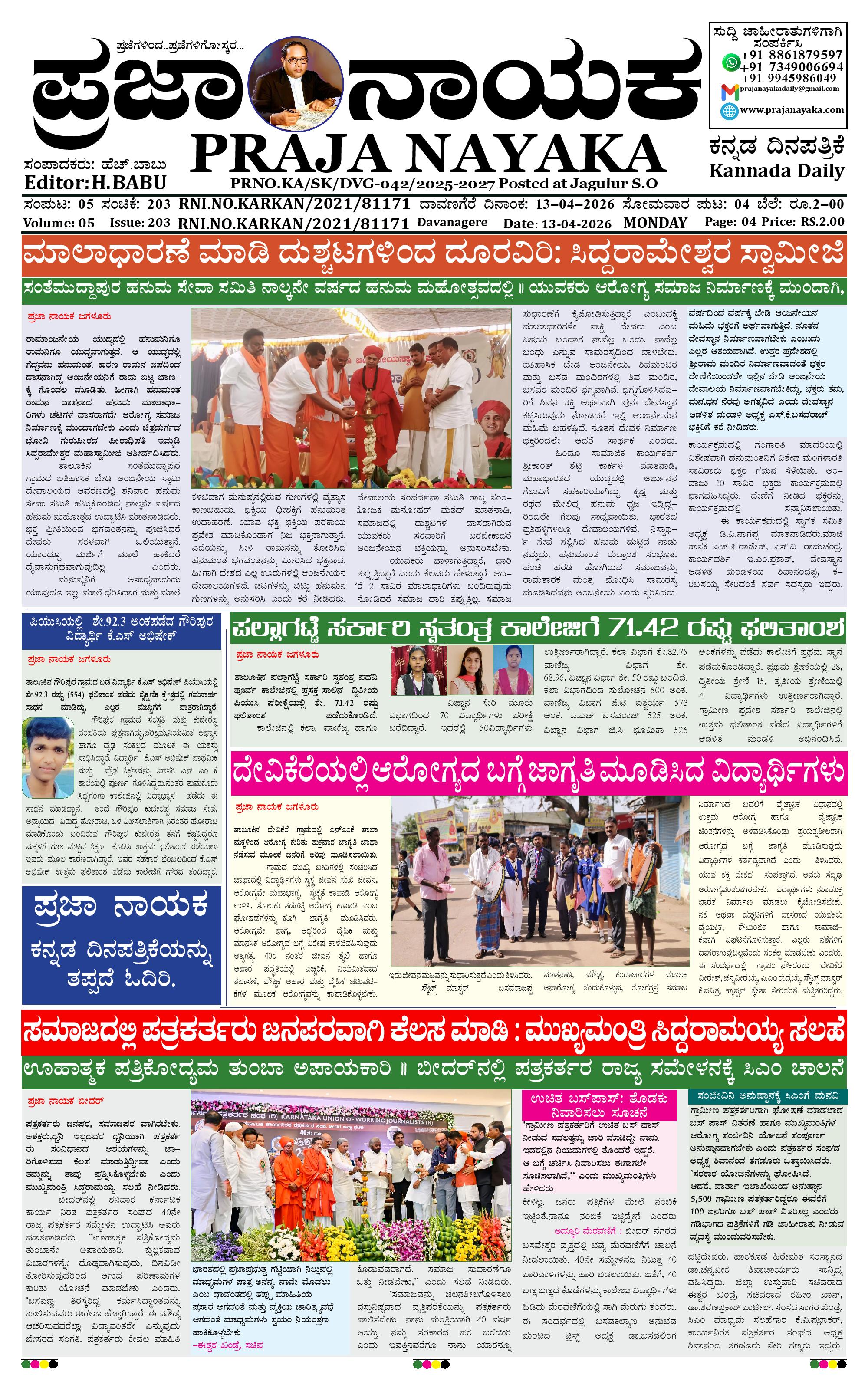 ಪ್ರಜಾ ನಾಯಕ 13 APR 2026 April 13, 2026 << First << 1 >> Last >> Page 1Page 2Page 3Page 4 × ಪ್ರಜಾ ನಾಯಕ 13 APR 2026 PRAJA NAYAKA (138)-page-001PRAJA NAYAKA (138)-page-002PRAJA NAYAKA (138)-page-003PRAJA NAYAKA (138)-page-004 << First << 1 >> Last >> PRAJA NAYAKA (138)-page-001PRAJA NAYAKA (138)-page-002PRAJA NAYAKA (138)-page-003PRAJA NAYAKA (138)-page-004 PRAJA NAYAKA (138)-page-001