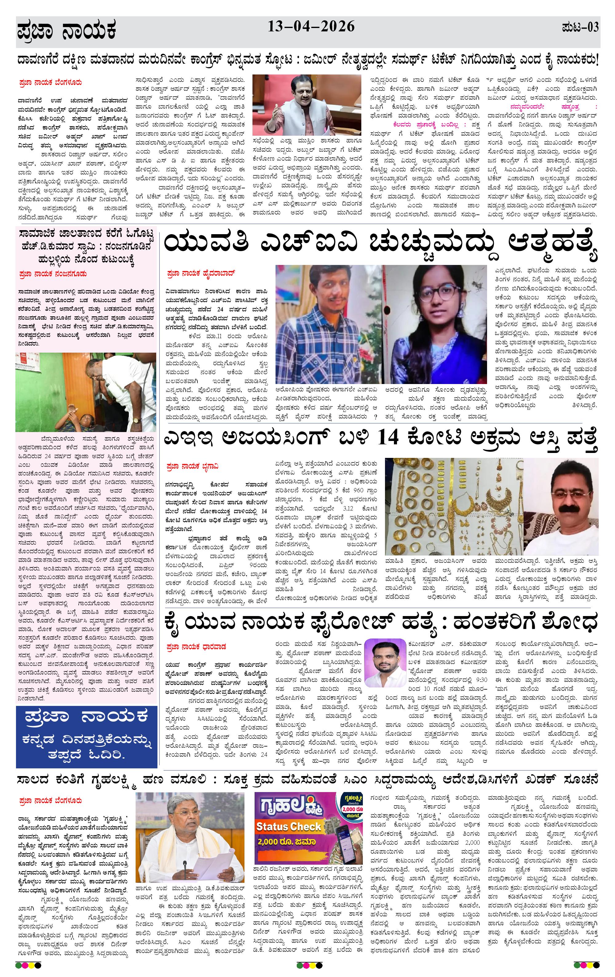 ಪ್ರಜಾ ನಾಯಕ 13 APR 2026 Page: 3 April 13, 2026 << First << 3 >> Last >> Page 1Page 2Page 3Page 4 × ಪ್ರಜಾ ನಾಯಕ 13 APR 2026 PRAJA NAYAKA (138)-page-001PRAJA NAYAKA (138)-page-002PRAJA NAYAKA (138)-page-003PRAJA NAYAKA (138)-page-004 << First << 3 >> Last >> PRAJA NAYAKA (138)-page-001PRAJA NAYAKA (138)-page-002PRAJA NAYAKA (138)-page-003PRAJA NAYAKA (138)-page-004 PRAJA NAYAKA (138)-page-003