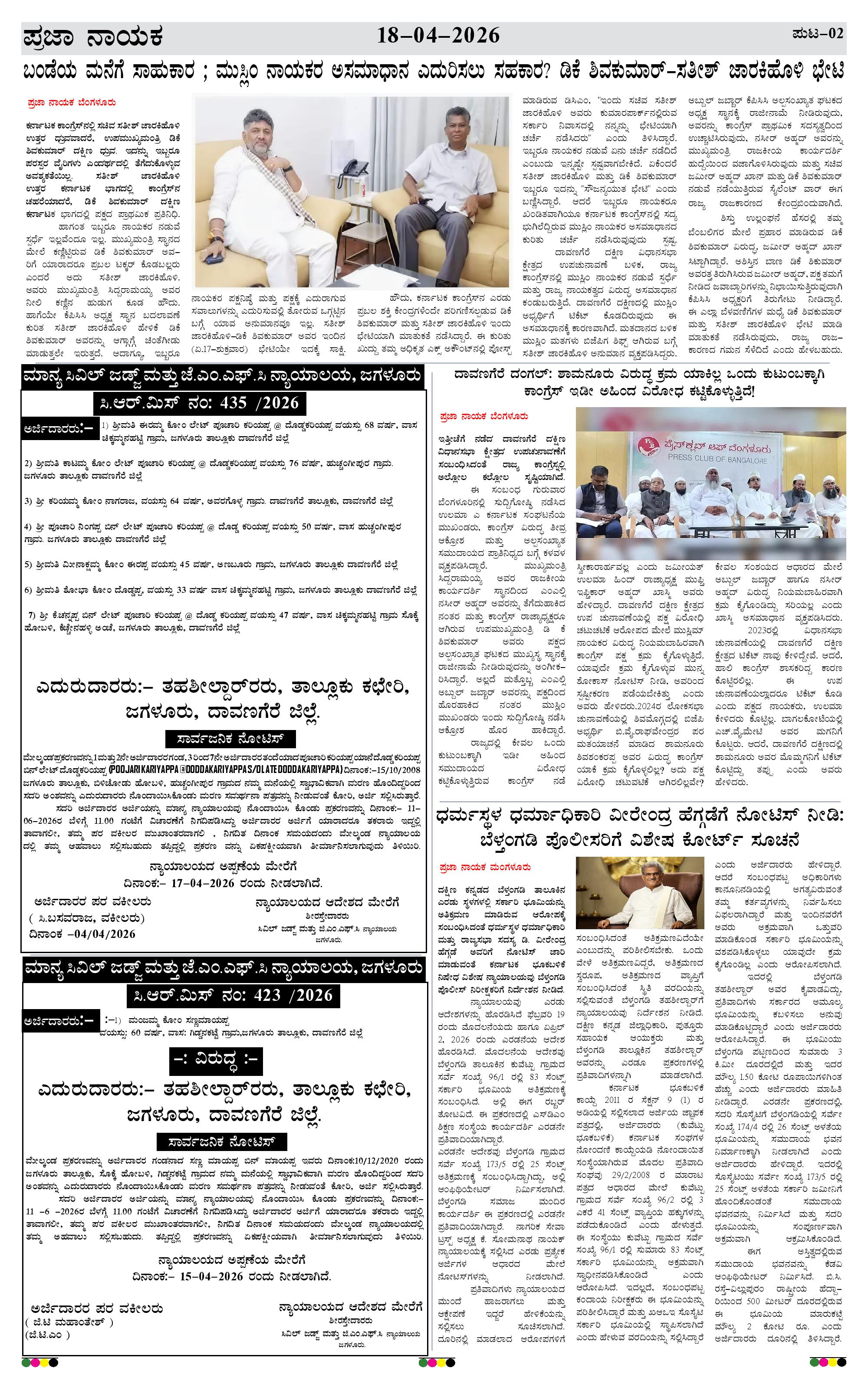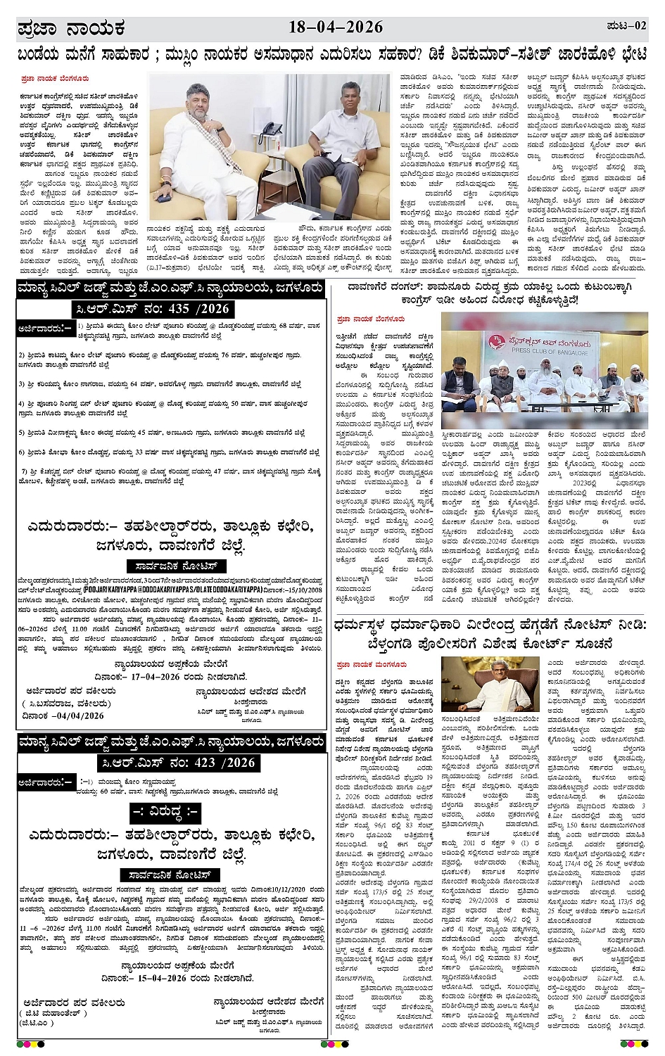 ಪ್ರಜಾ ನಾಯಕ 18 APR 2026 Page: 2 April 18, 2026 << First << 2 >> Last >> Page 1Page 2Page 3Page 4 × ಪ್ರಜಾ ನಾಯಕ 18 APR 2026 PRAJA NAYAKA (143)-page-001PRAJA NAYAKA (143)-page-002PRAJA NAYAKA (143)-page-003PRAJA NAYAKA (143)-page-004 << First << 2 >> Last >> PRAJA NAYAKA (143)-page-001PRAJA NAYAKA (143)-page-002PRAJA NAYAKA (143)-page-003PRAJA NAYAKA (143)-page-004 PRAJA NAYAKA (143)-page-002