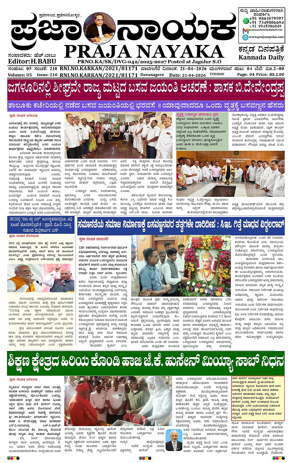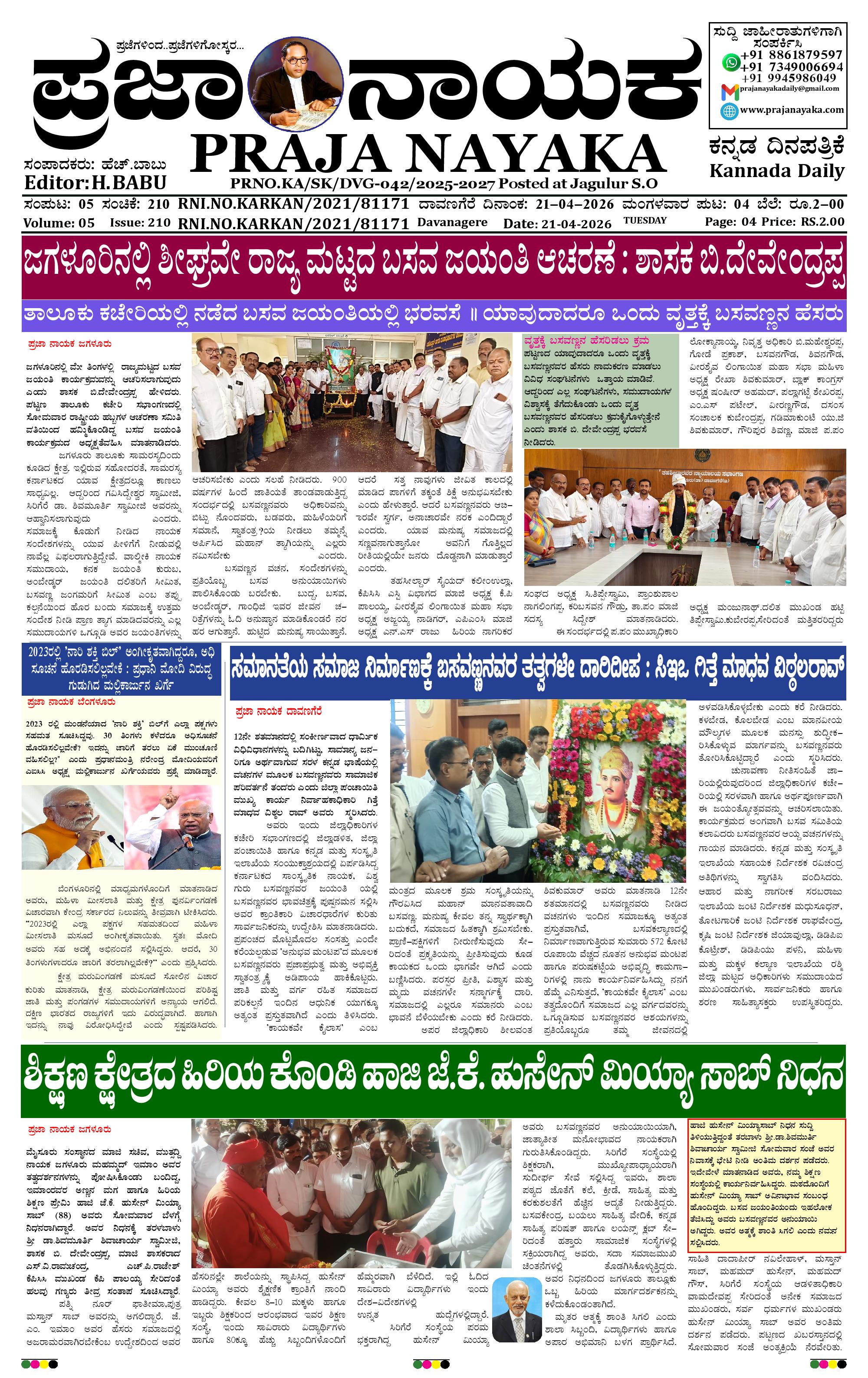 ಪ್ರಜಾ ನಾಯಕ 21 APR 2026 April 21, 2026 << First << 1 >> Last >> Page 1Page 2Page 3Page 4 × ಪ್ರಜಾ ನಾಯಕ 21 APR 2026 PRAJA NAYAKA (145)-page-001PRAJA NAYAKA (145)-page-002PRAJA NAYAKA (145)-page-003PRAJA NAYAKA (145)-page-004 << First << 1 >> Last >> PRAJA NAYAKA (145)-page-001PRAJA NAYAKA (145)-page-002PRAJA NAYAKA (145)-page-003PRAJA NAYAKA (145)-page-004 PRAJA NAYAKA (145)-page-001