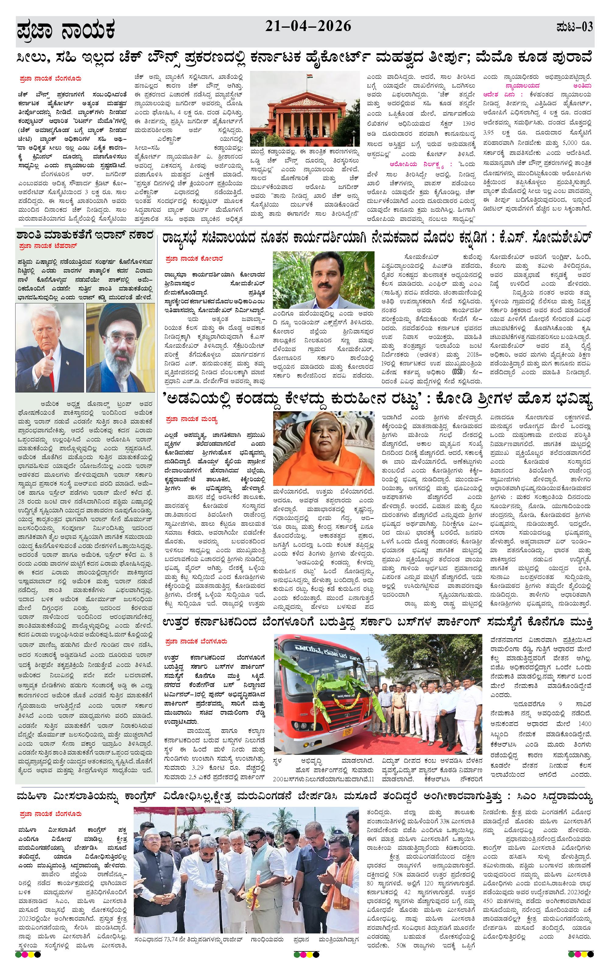 ಪ್ರಜಾ ನಾಯಕ 21 APR 2026 Page: 3 April 21, 2026 << First << 3 >> Last >> Page 1Page 2Page 3Page 4 × ಪ್ರಜಾ ನಾಯಕ 21 APR 2026 PRAJA NAYAKA (145)-page-001PRAJA NAYAKA (145)-page-002PRAJA NAYAKA (145)-page-003PRAJA NAYAKA (145)-page-004 << First << 3 >> Last >> PRAJA NAYAKA (145)-page-001PRAJA NAYAKA (145)-page-002PRAJA NAYAKA (145)-page-003PRAJA NAYAKA (145)-page-004 PRAJA NAYAKA (145)-page-003