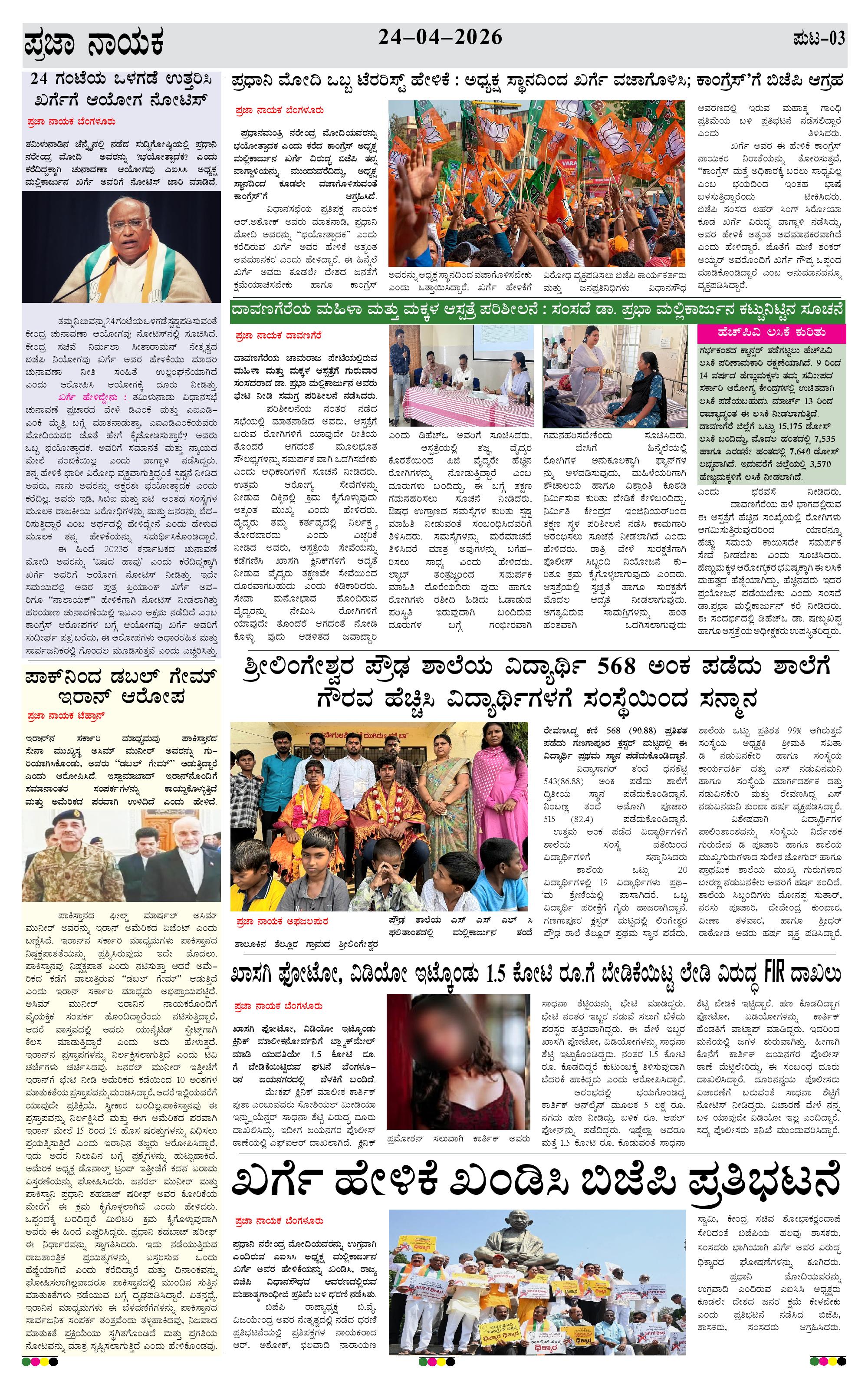 ಪ್ರಜಾ ನಾಯಕ 24 APR 2026 Page: 3 April 24, 2026 << First << 3 >> Last >> Page 1Page 2Page 3Page 4 × ಪ್ರಜಾ ನಾಯಕ 24 APR 2026 PRAJA NAYAKA (147)-page-001PRAJA NAYAKA (147)-page-002PRAJA NAYAKA (147)-page-003PRAJA NAYAKA (147)-page-004 << First << 3 >> Last >> PRAJA NAYAKA (147)-page-001PRAJA NAYAKA (147)-page-002PRAJA NAYAKA (147)-page-003PRAJA NAYAKA (147)-page-004 PRAJA NAYAKA (147)-page-003