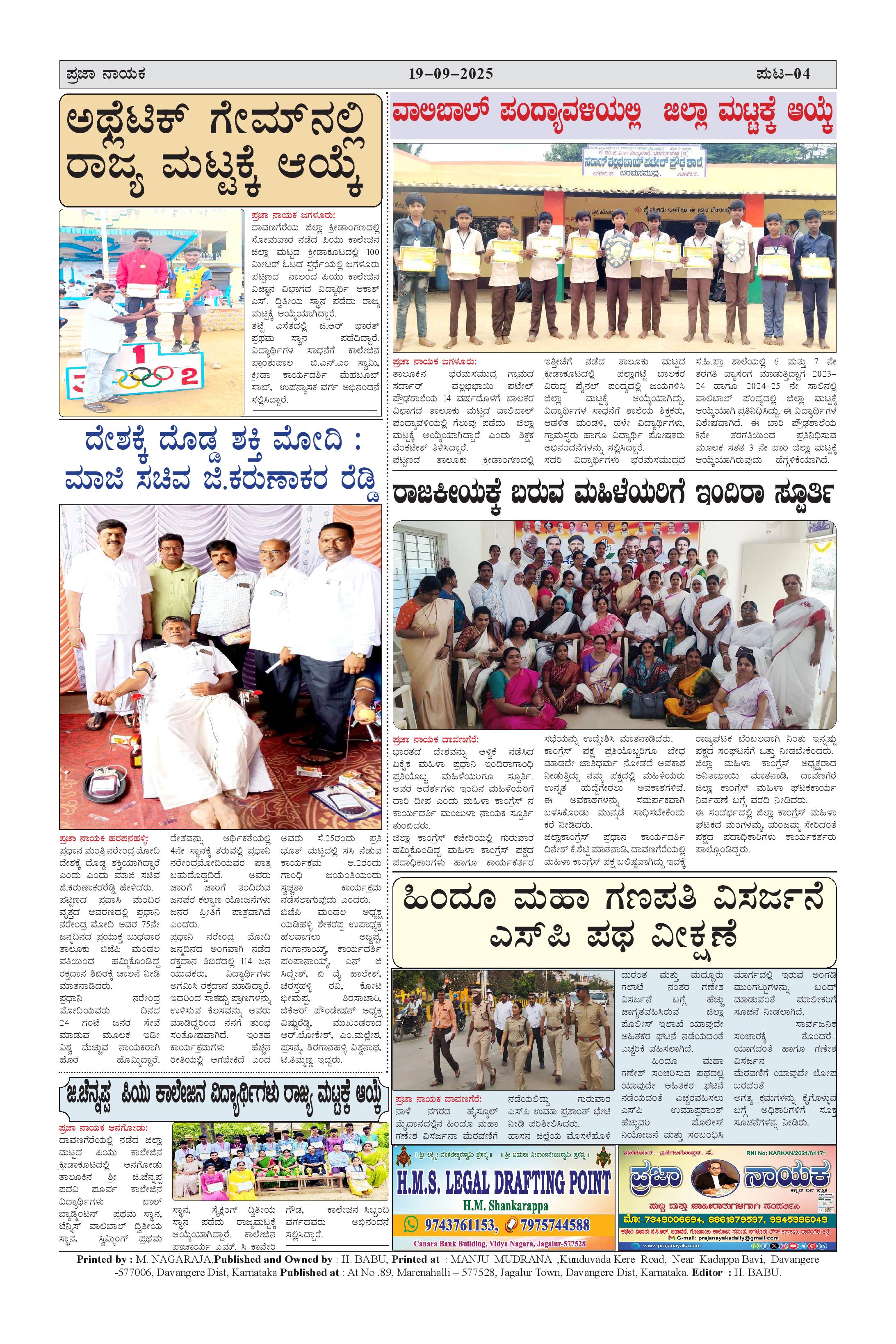 ಪ್ರಜಾ ನಾಯಕ 19 SEP 2025 Page: 4 September 19, 2025 << First << 4 >> Last >> Page 1Page 2Page 3Page 4 × ಪ್ರಜಾ ನಾಯಕ 19 SEP 2025 prajanayaka 19.09.2025 news paper-page-001prajanayaka 19.09.2025 news paper-page-002prajanayaka 19.09.2025 news paper-page-003prajanayaka 19.09.2025 news paper-page-004 << First << 4 >> Last >> prajanayaka 19.09.2025 news paper-page-001prajanayaka 19.09.2025 news paper-page-002prajanayaka 19.09.2025 news paper-page-003prajanayaka 19.09.2025 news paper-page-004 prajanayaka 19.09.2025 news paper-page-004