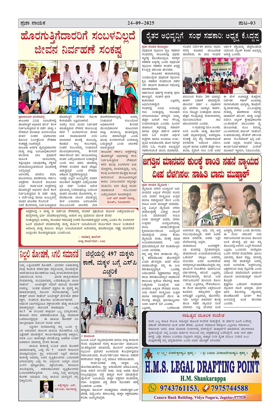 ಪ್ರಜಾ ನಾಯಕ 24 SEP 2025 Page: 3 September 24, 2025 << First << 3 >> Last >> Page 1Page 2Page 3Page 4 × ಪ್ರಜಾ ನಾಯಕ 24 SEP 2025 PRAJA-NAYAKA-page-001PRAJA-NAYAKA-page-002PRAJA-NAYAKA-page-003PRAJA-NAYAKA-page-004 << First << 3 >> Last >> PRAJA-NAYAKA-page-001PRAJA-NAYAKA-page-002PRAJA-NAYAKA-page-003PRAJA-NAYAKA-page-004 PRAJA-NAYAKA-page-003
