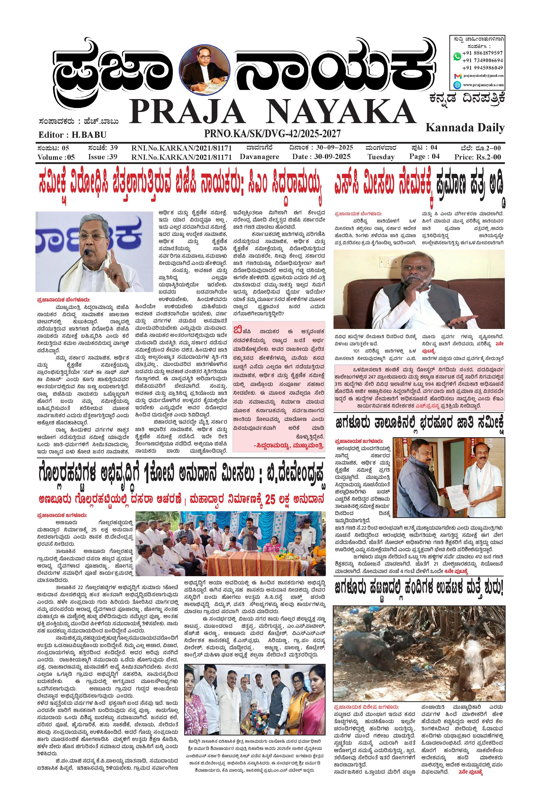 ಪ್ರಜಾ ನಾಯಕ 30 SEP 2025 September 30, 2025 << First << 1 >> Last >> Page 1Page 2Page 3Page 4 × ಪ್ರಜಾ ನಾಯಕ 30 SEP 2025 PRAJA NAYAKA (3)-page-001PRAJA NAYAKA (3)-page-002PRAJA NAYAKA (3)-page-003PRAJA NAYAKA (3)-page-004 << First << 1 >> Last >> PRAJA NAYAKA (3)-page-001PRAJA NAYAKA (3)-page-002PRAJA NAYAKA (3)-page-003PRAJA NAYAKA (3)-page-004 PRAJA NAYAKA (3)-page-001