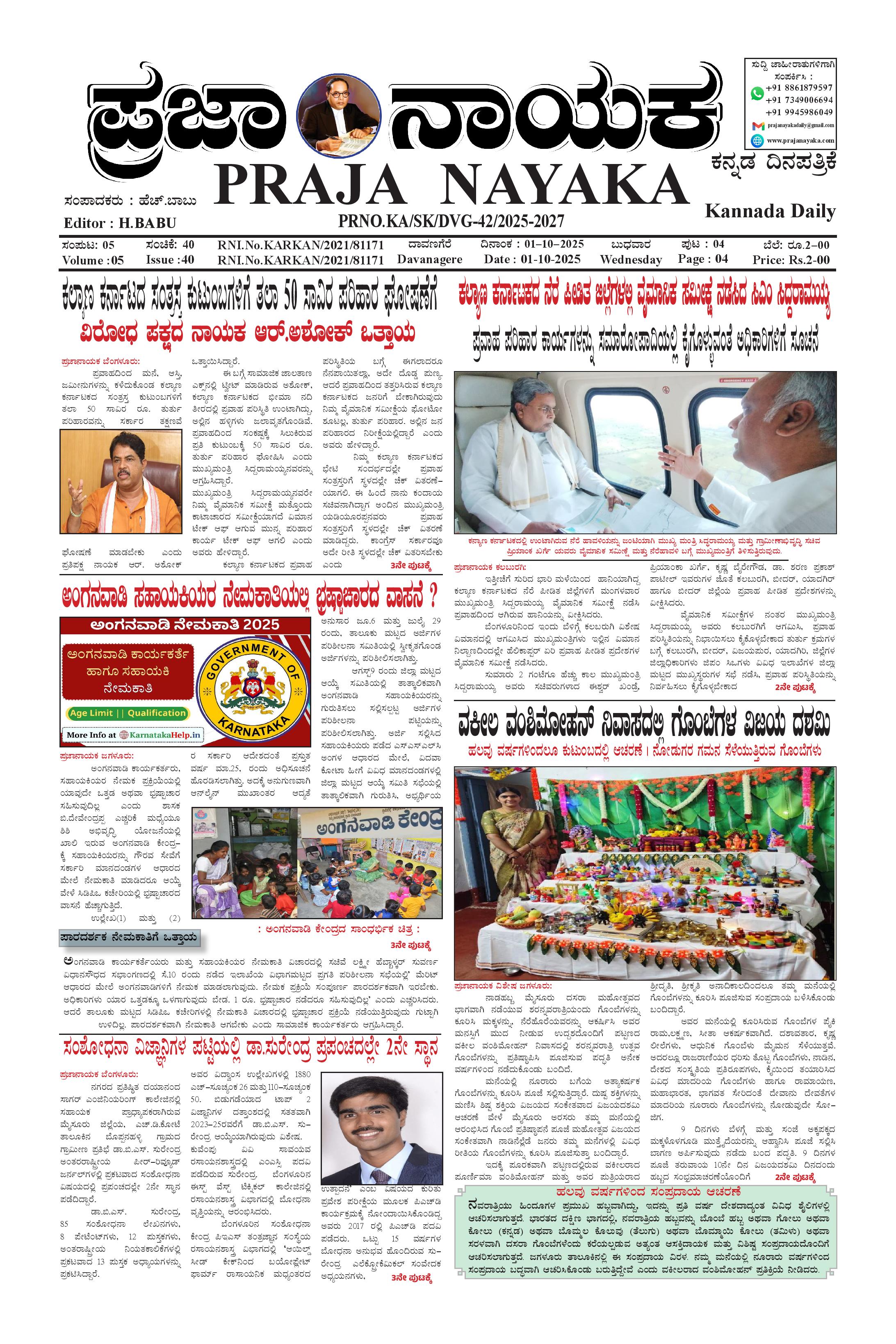 ಪ್ರಜಾ ನಾಯಕ 01 OCT 2025 October 01, 2025 << First << 1 >> Last >> Page 1Page 2Page 3Page 4 × ಪ್ರಜಾ ನಾಯಕ 01 OCT 2025 PRAJANAYAKA-page-001PRAJANAYAKA-page-002PRAJANAYAKA-page-003PRAJANAYAKA-page-004 << First << 1 >> Last >> PRAJANAYAKA-page-001PRAJANAYAKA-page-002PRAJANAYAKA-page-003PRAJANAYAKA-page-004 PRAJANAYAKA-page-001