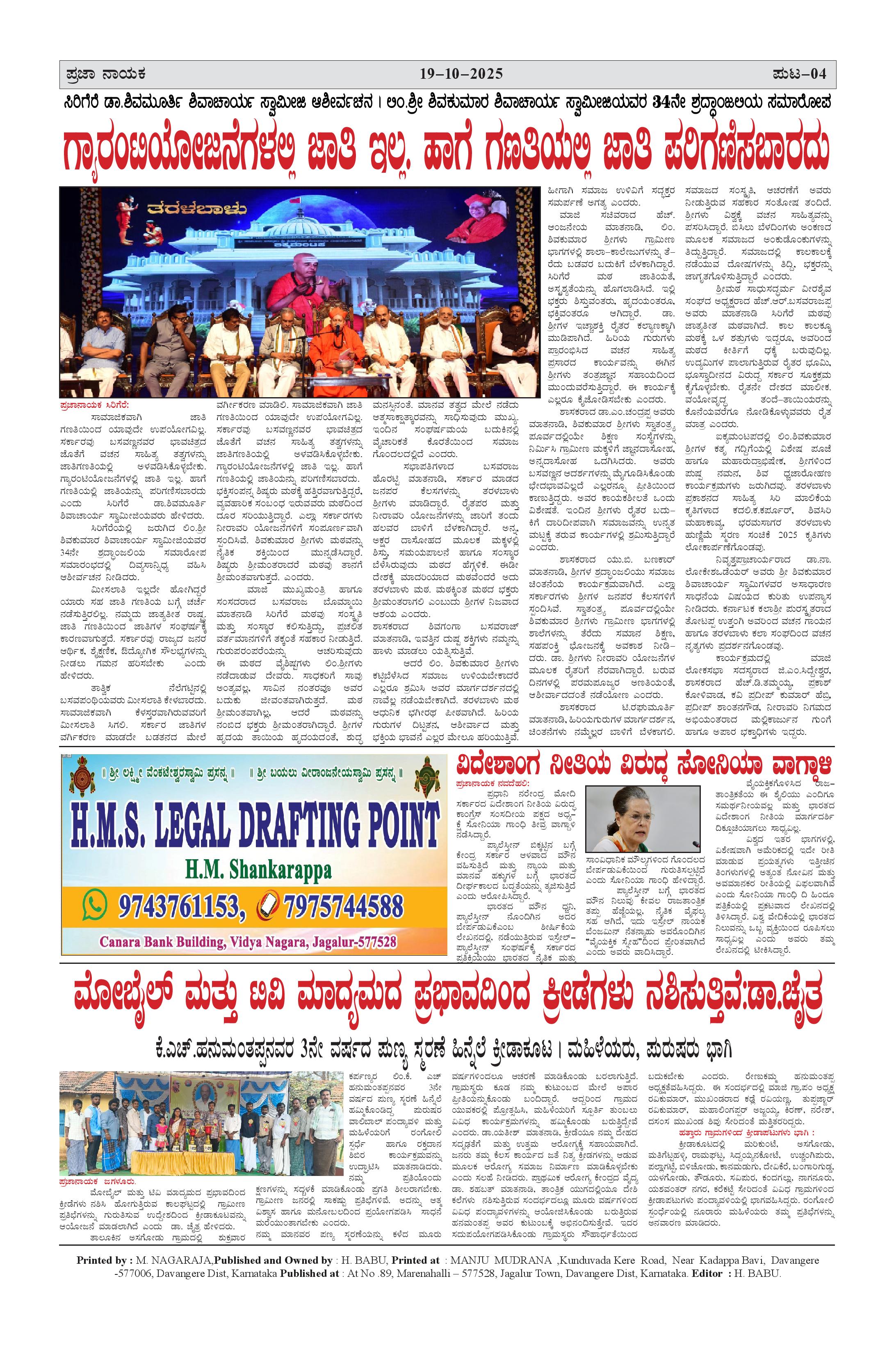 ಪ್ರಜಾ ನಾಯಕ 19 Oct 2025 Page: 4 October 19, 2025 << First << 4 >> Last >> Page 1Page 2Page 3Page 4 × ಪ್ರಜಾ ನಾಯಕ 19 Oct 2025 prajanayaka 27-09-2025-page-001prajanayaka 27-09-2025-page-002prajanayaka 27-09-2025-page-003prajanayaka 27-09-2025-page-004 << First << 4 >> Last >> prajanayaka 27-09-2025-page-001prajanayaka 27-09-2025-page-002prajanayaka 27-09-2025-page-003prajanayaka 27-09-2025-page-004 prajanayaka 27-09-2025-page-004