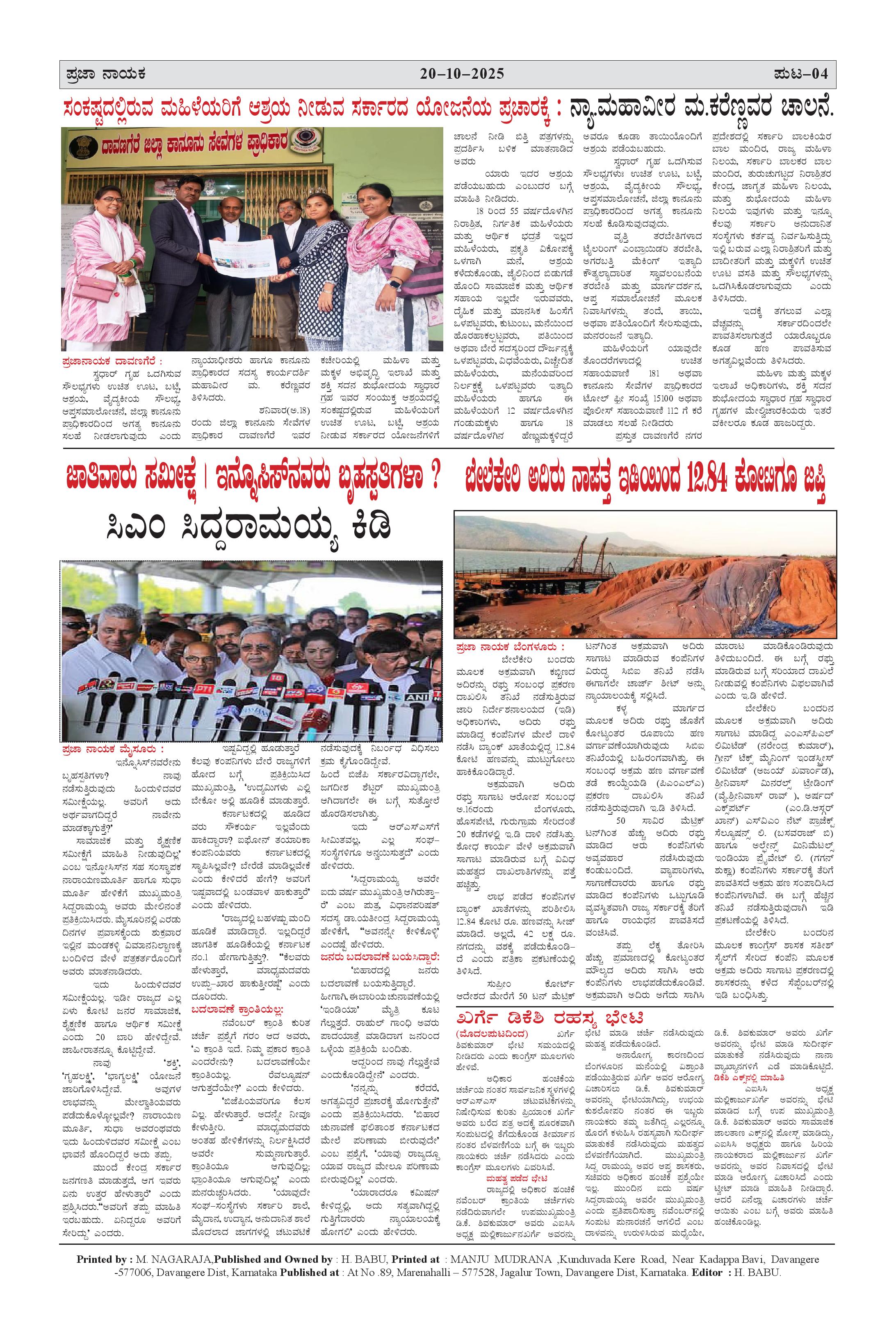 ಪ್ರಜಾ ನಾಯಕ 20 Oct 2025 Page: 4 October 20, 2025 << First << 4 >> Last >> Page 1Page 2Page 3Page 4 × ಪ್ರಜಾ ನಾಯಕ 20 Oct 2025 PRAJA NAYAKA (2)-page-001PRAJA NAYAKA (2)-page-002PRAJA NAYAKA (2)-page-003PRAJA NAYAKA (2)-page-004 << First << 4 >> Last >> PRAJA NAYAKA (2)-page-001PRAJA NAYAKA (2)-page-002PRAJA NAYAKA (2)-page-003PRAJA NAYAKA (2)-page-004 PRAJA NAYAKA (2)-page-004