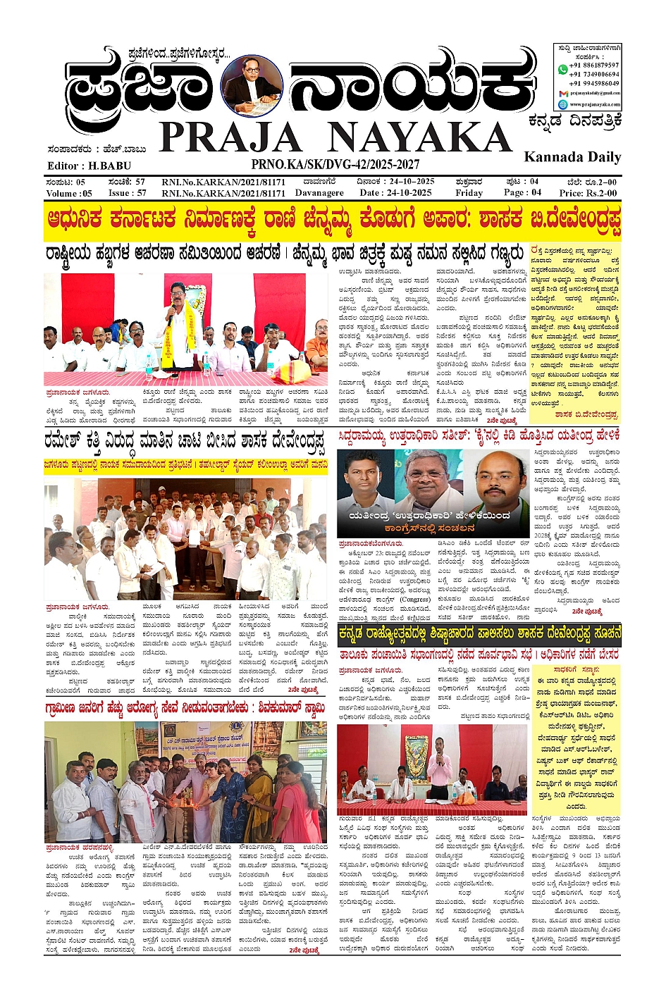 ಪ್ರಜಾ ನಾಯಕ 24 Oct 2025 October 24, 2025 << First << 1 >> Last >> Page 1Page 2Page 3Page 4 × ಪ್ರಜಾ ನಾಯಕ 24 Oct 2025 PRAJA NAYAKA (14)-page-001PRAJA NAYAKA (14)-page-002PRAJA NAYAKA (14)-page-003PRAJA NAYAKA (14)-page-004 << First << 1 >> Last >> PRAJA NAYAKA (14)-page-001PRAJA NAYAKA (14)-page-002PRAJA NAYAKA (14)-page-003PRAJA NAYAKA (14)-page-004 PRAJA NAYAKA (14)-page-001