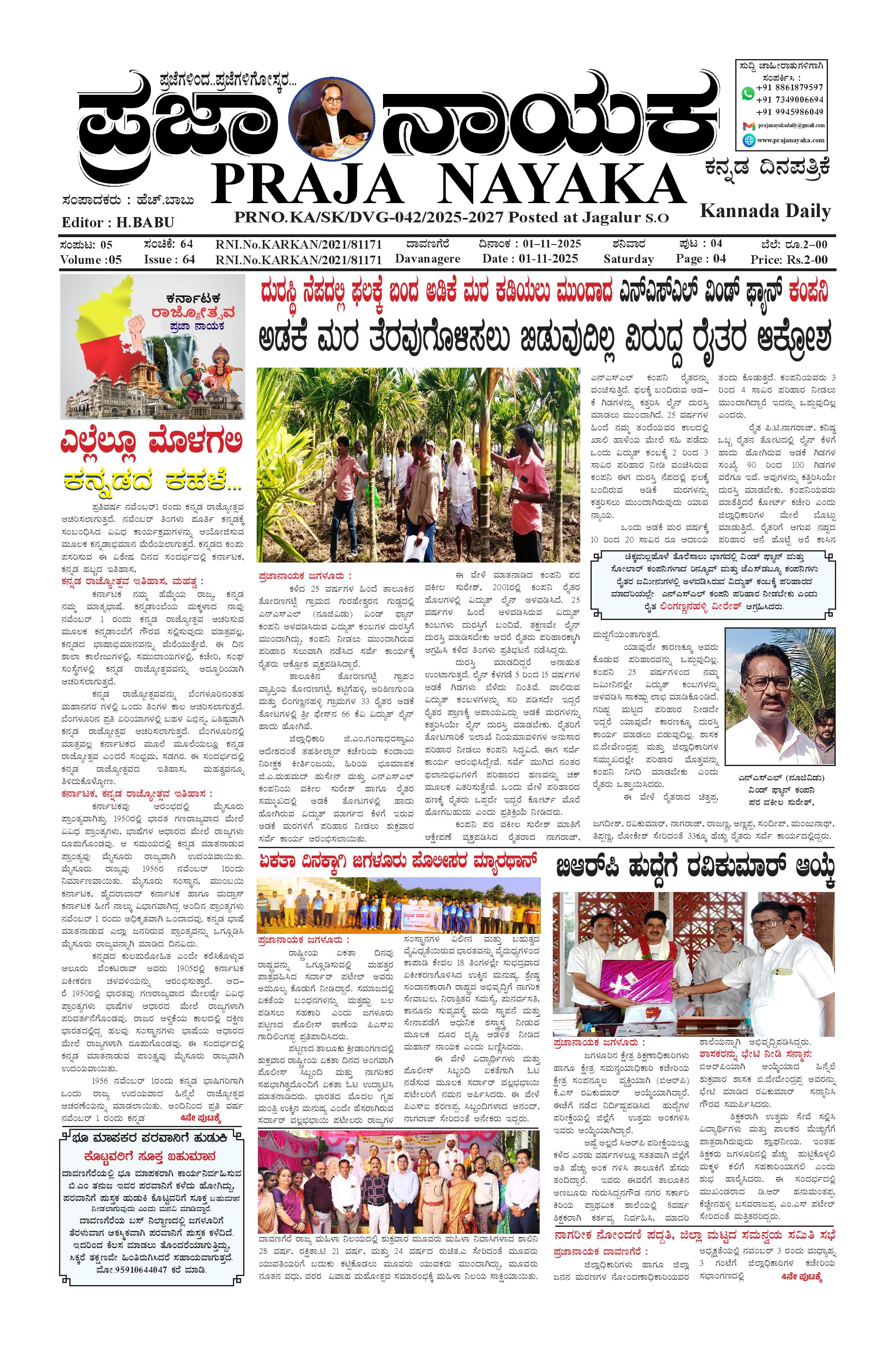 ಪ್ರಜಾ ನಾಯಕ 01 NOV 2025 November 01, 2025 << First << 1 >> Last >> Page 1Page 2Page 3Page 4 × ಪ್ರಜಾ ನಾಯಕ 01 NOV 2025 PRAJA NAYAKA (19)-page-001PRAJA NAYAKA (19)-page-002PRAJA NAYAKA (19)-page-003PRAJA NAYAKA (19)-page-004 << First << 1 >> Last >> PRAJA NAYAKA (19)-page-001PRAJA NAYAKA (19)-page-002PRAJA NAYAKA (19)-page-003PRAJA NAYAKA (19)-page-004 PRAJA NAYAKA (19)-page-001